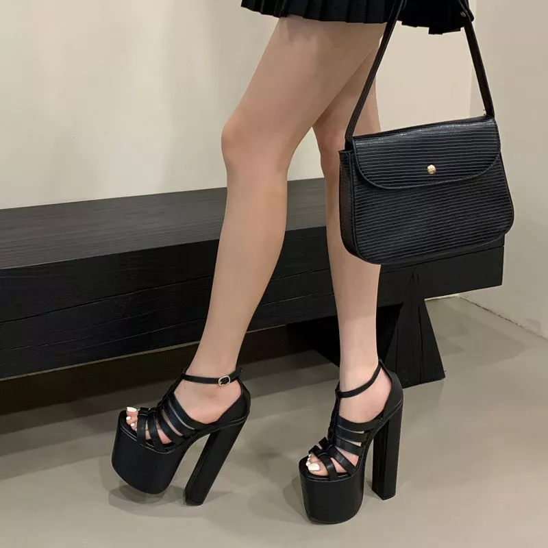 Sandali Plateau 18 Cm Neri Moda Elegante Serata Look Sensuale Tacco Alto CF58720