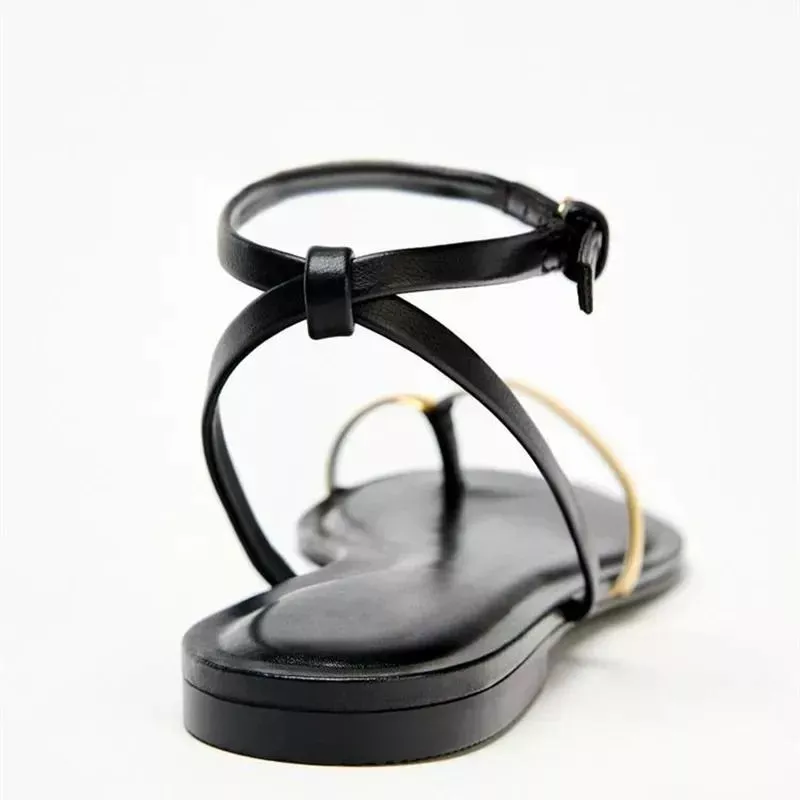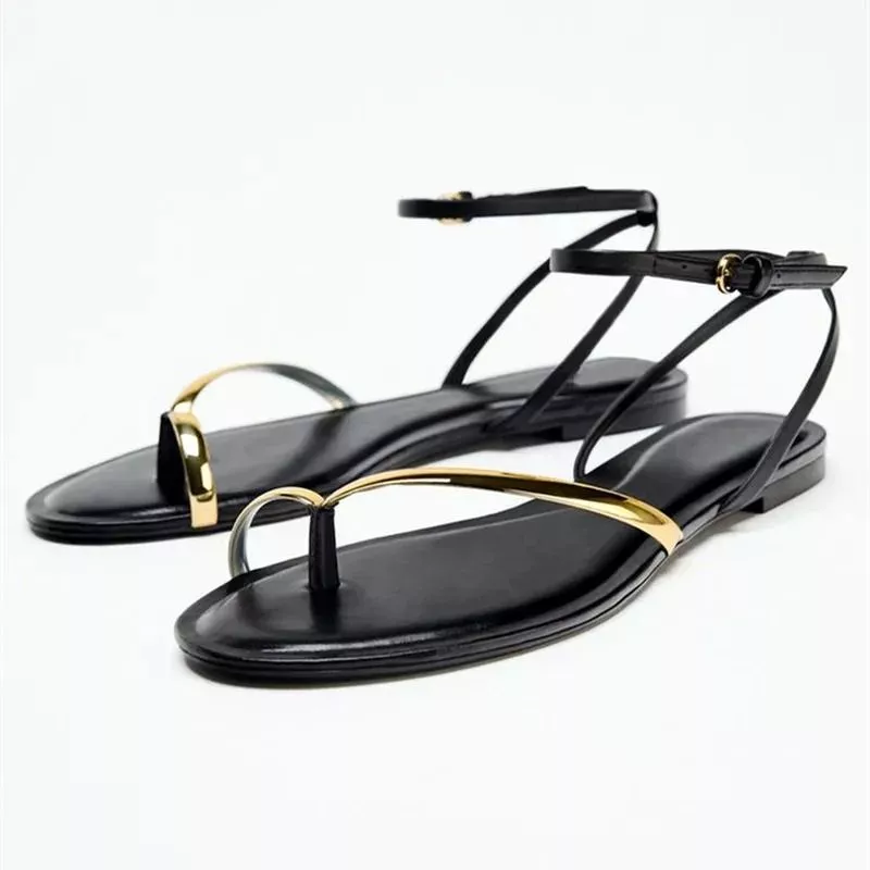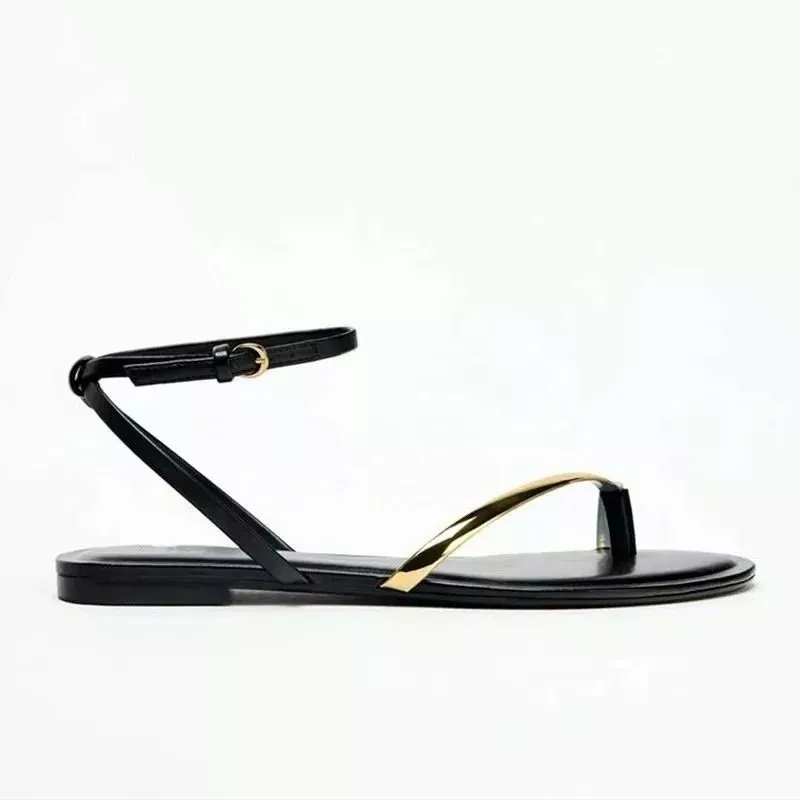 Sandali Donna Flat Eleganti Minimal Infradito Cinturino Oro Nero CF719436