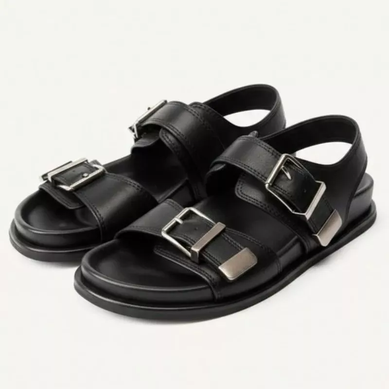 Le fibbie non sono solo decorative: contribuiscono a dare struttura visiva al sandalo, aumentando la percezione di qualità e solidità del prodotto.