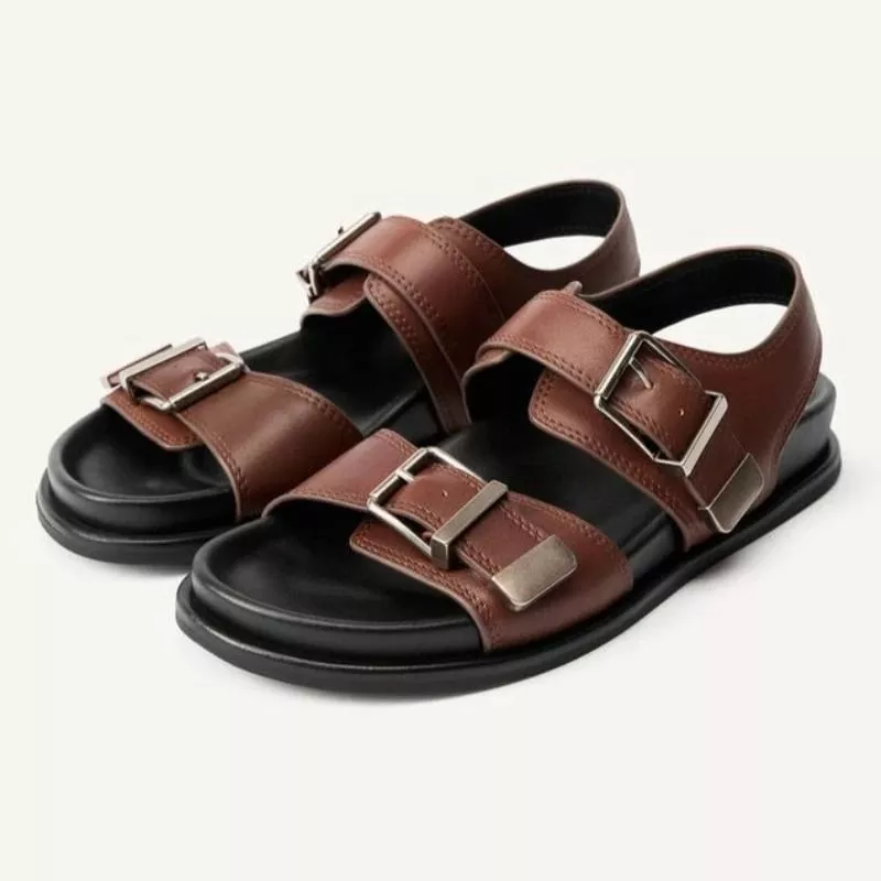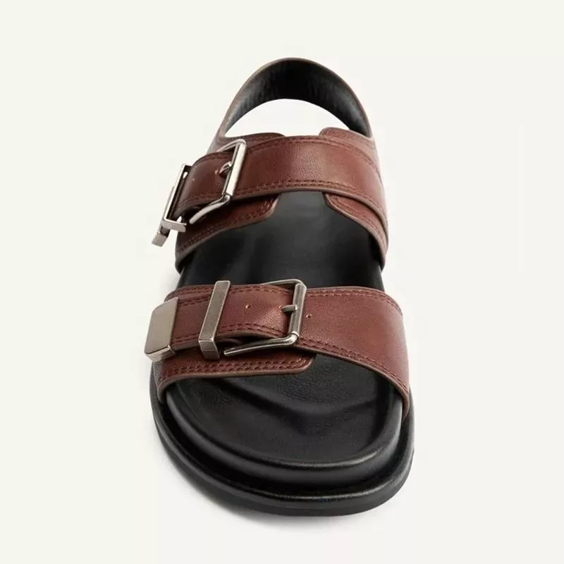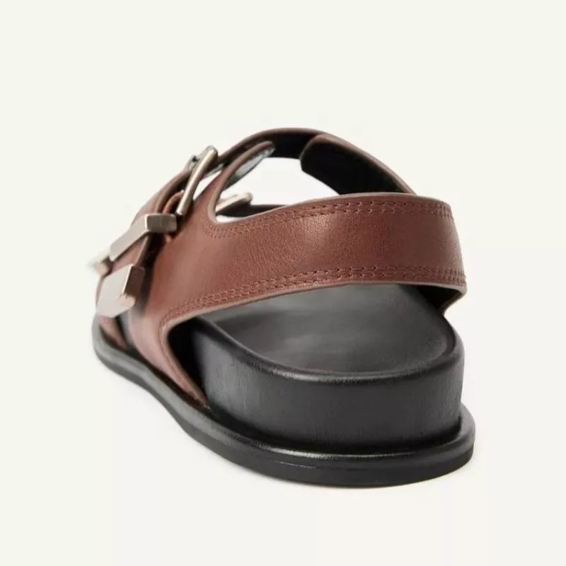 Le fibbie non sono solo decorative: contribuiscono a dare struttura visiva al sandalo, aumentando la percezione di qualità e solidità del prodotto.