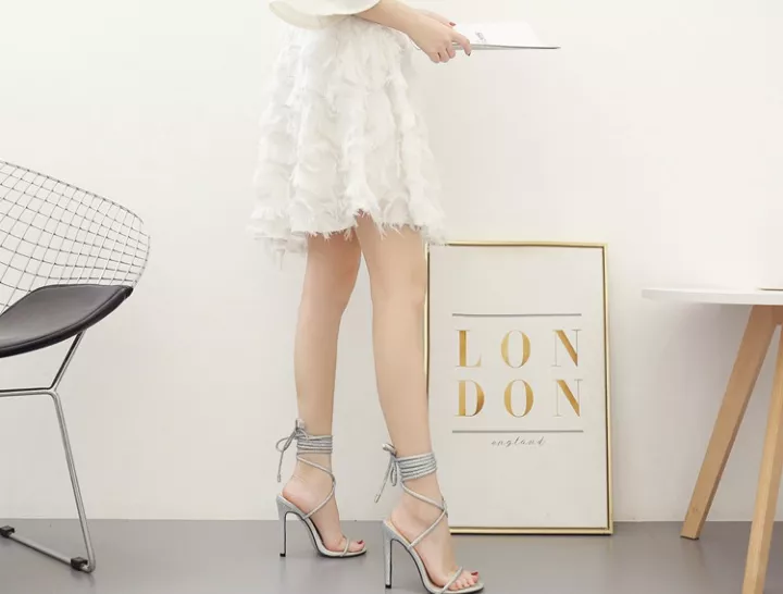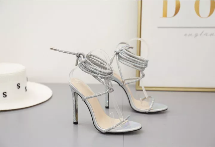 Sandali donna tacco alto 11 cm argento lacci gladiatore pelle sintetica 92863
