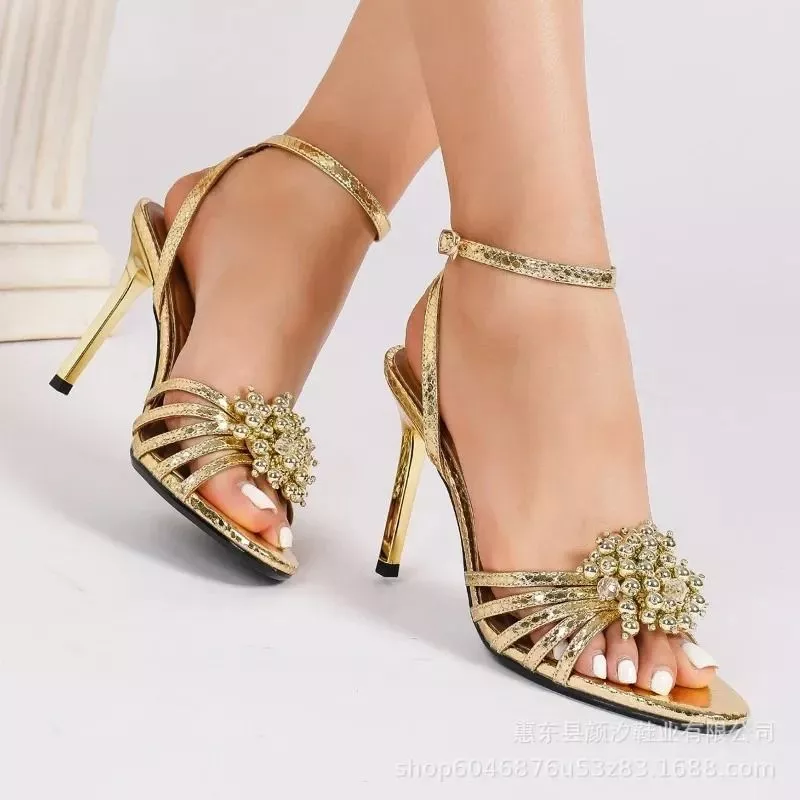 Sandali Donna Tacco Alto Decorazione Gioiello Elegante Oro CF973661