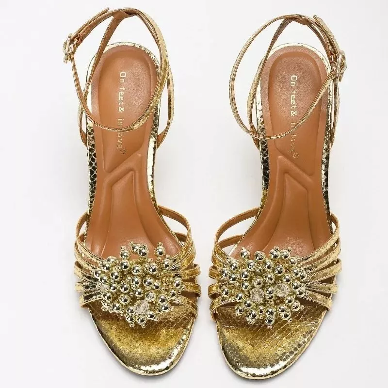 I sottili cinturini avvolgono il piede con delicatezza, mentre il cinturino alla caviglia regolabile garantisce stabilità e una calzata sicura. Il tacco alto slanciato valorizza la figura, rendendo questi sandali perfetti per completare look eleganti e da sera.