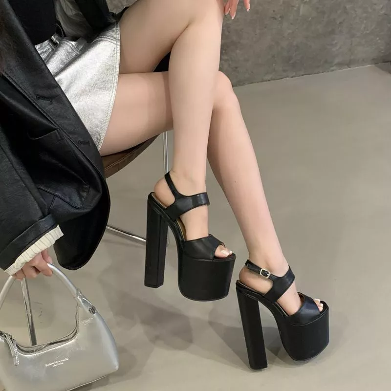 Sandali eleganti con maxi plateau, pensati per aggiungere slancio e un carattere deciso al look. La struttura importante e il tacco alto valorizzano la postura mantenendo stabilità, mentre il materiale in pelle sintetica offre comfort e resistenza.