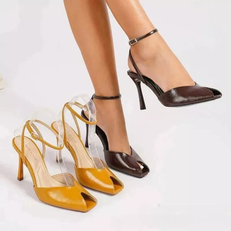 Il tacco alto sottile dona altezza e femminilità, mentre il cinturino regolabile alla caviglia garantisce una calzata stabile e sicura. La parte anteriore più coprente offre maggiore supporto rispetto ai sandali minimal, rendendo questo modello più versatile e confortevole.