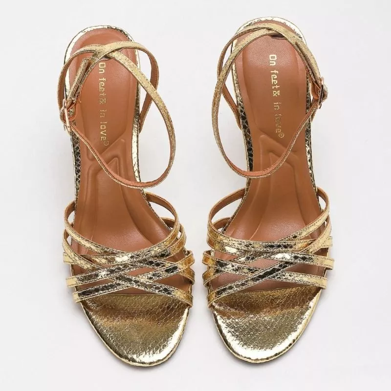 Il tacco alto sottile dona slancio alla figura, mentre il cinturino regolabile alla caviglia assicura stabilità e una calzata precisa. Le fasce multiple distribuiscono meglio il supporto sul piede, migliorando il comfort rispetto ai modelli minimal più rigidi.