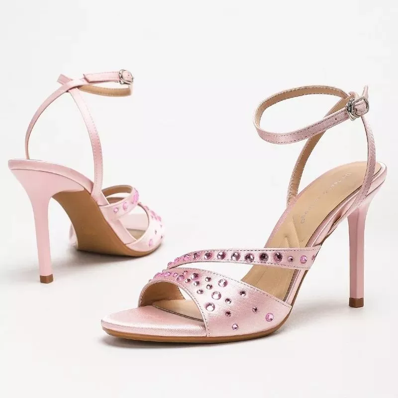 Sandali Rosa Donna Tacco Alto Eleganti Con Strass Cinturino Estate CF9915X