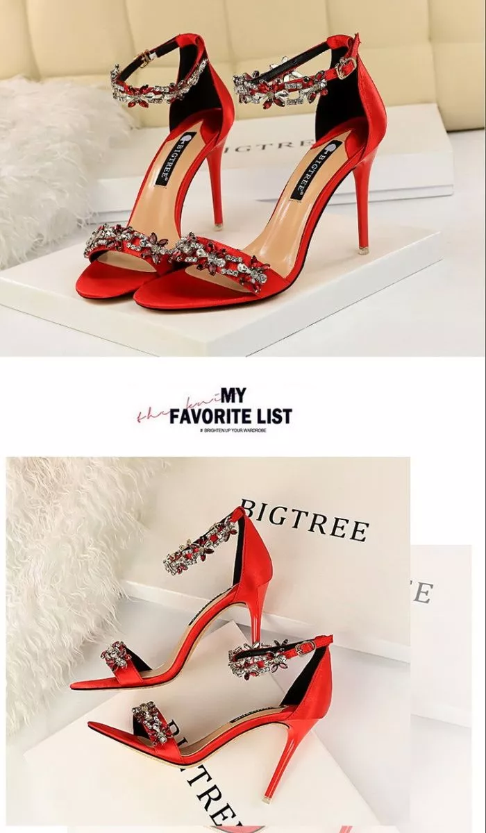 Sandali Rossi Gioiello Con Strass Argento Tacco Alto 9 Cm Chic Da Sera CF55574