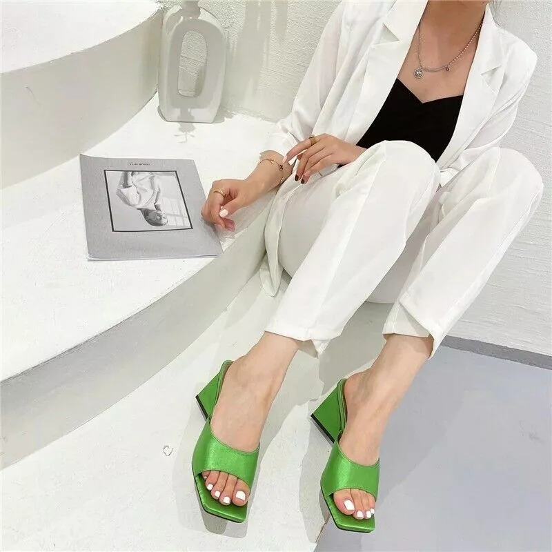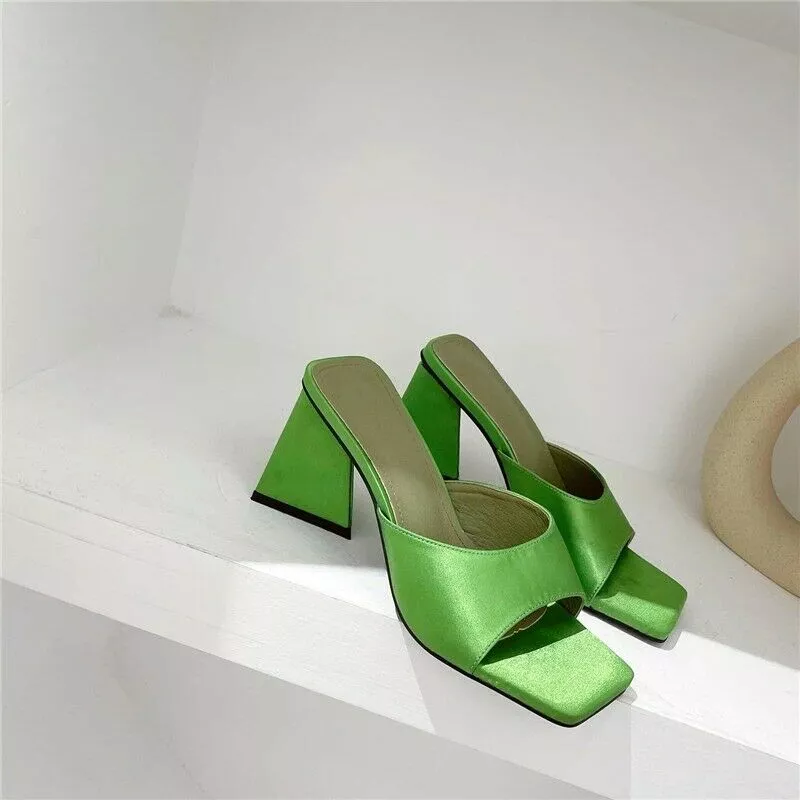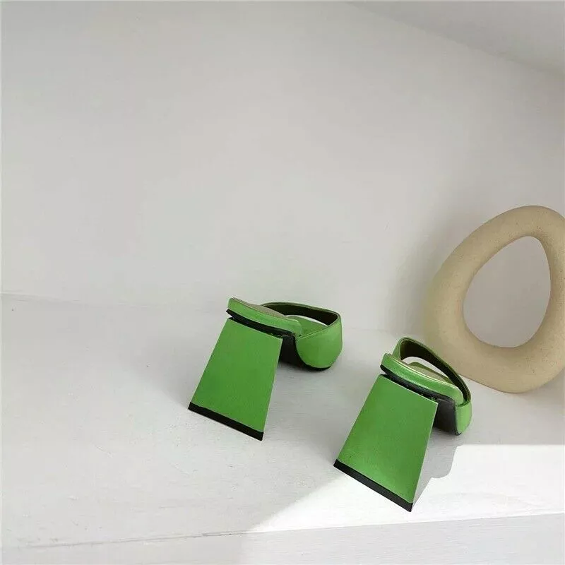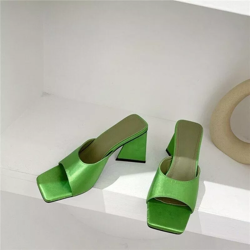 sandali sabot ciabatte tacco quadrato 9 cm verde pelle sintetica CZ179
