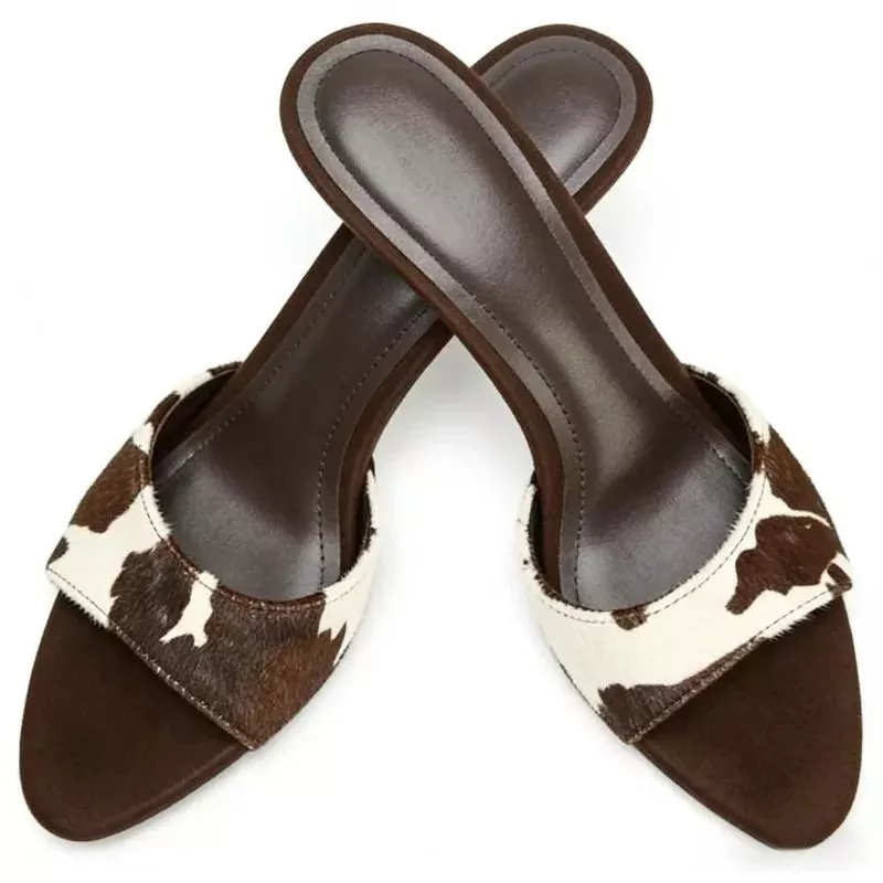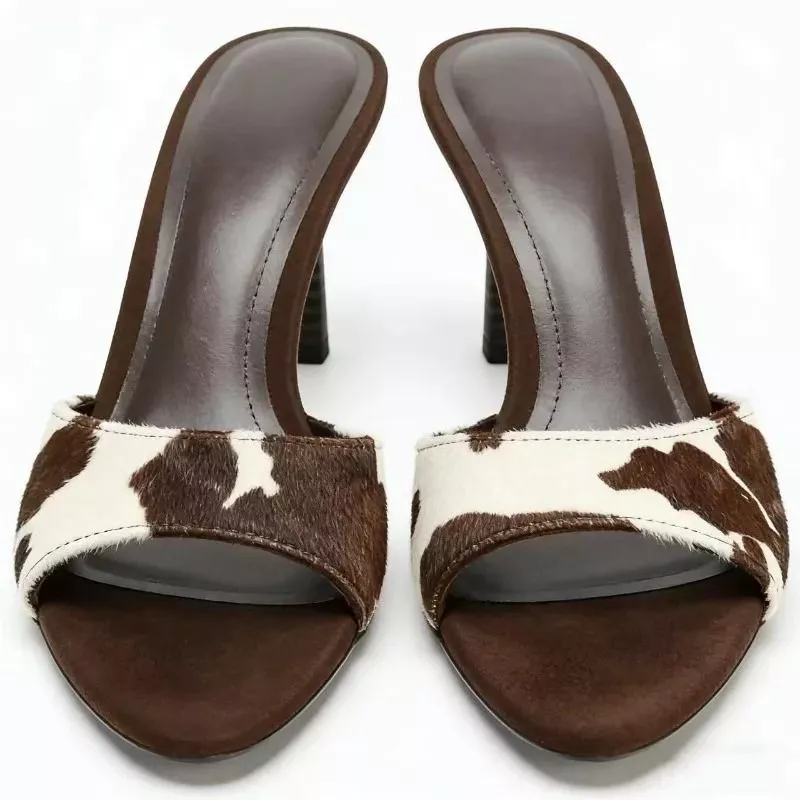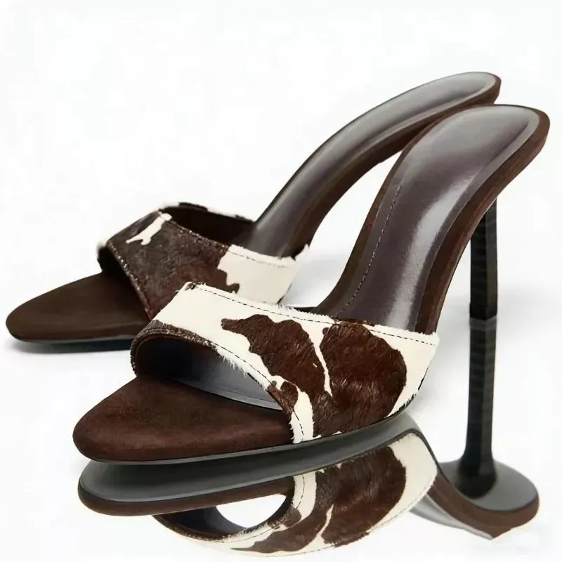 Sandali Tacco Alto 10 Cm Fascia Effetto Cavallino Marrone Animalier CH85967