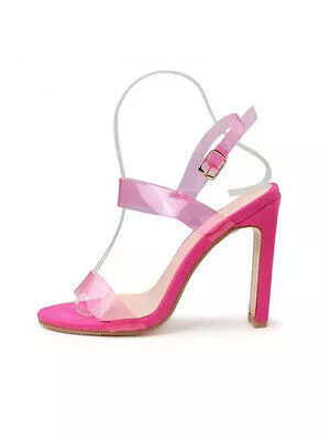 Sandali tacco alto donna 11 cm rosa trasparente comodi pelle sintetica 8049