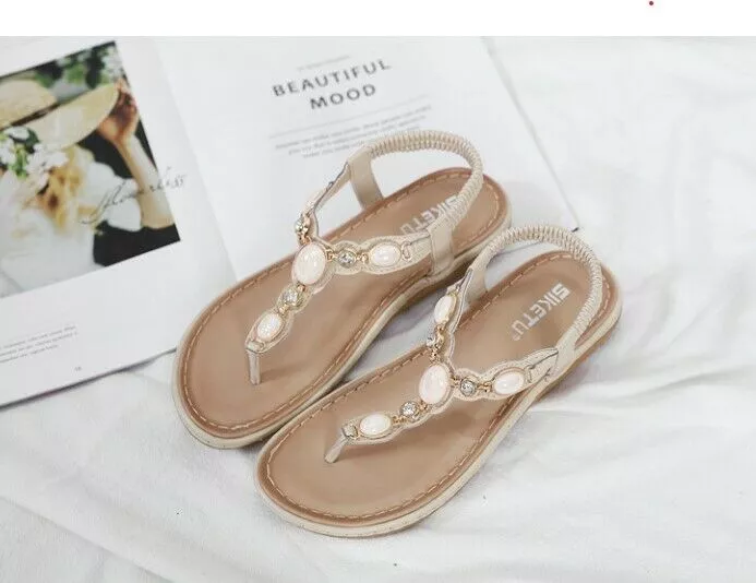 sandali tacco basso beige cinturino comode pelle sintetica indian bohoo CZ192