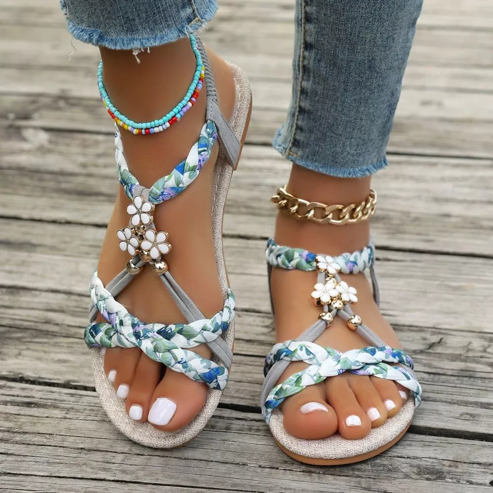 Sandali Grigi Intrecciati Fiori Decorativi Morbidi E Comodi Per Estate CF59644