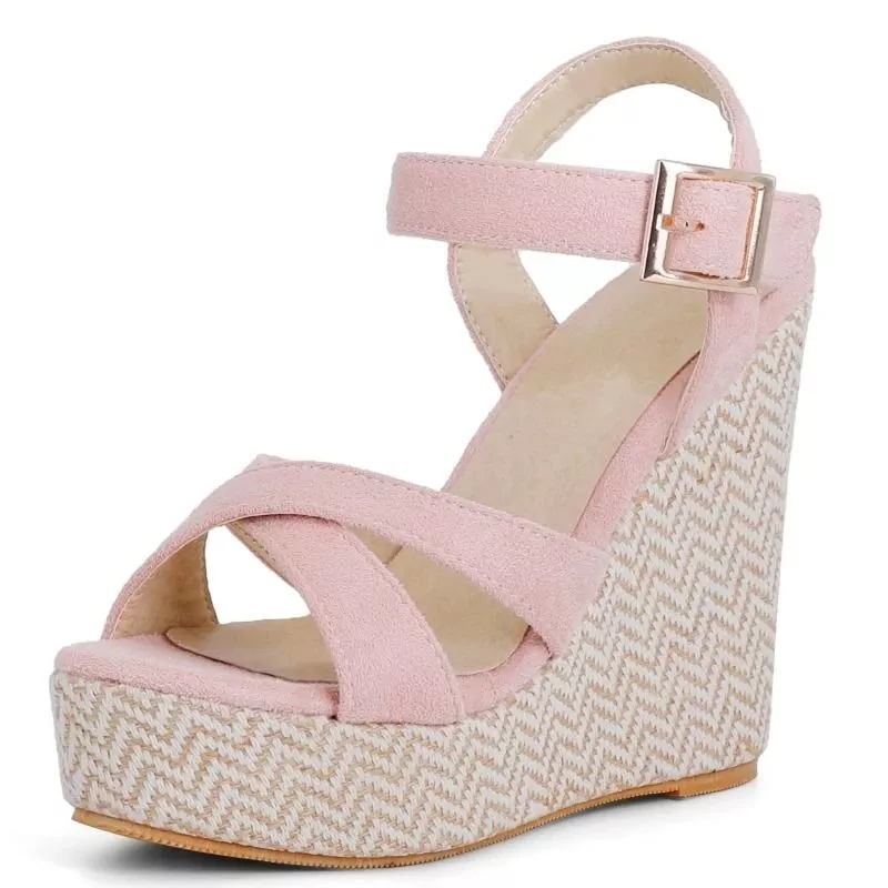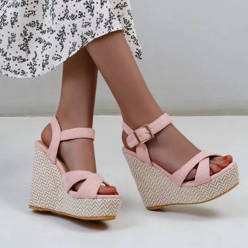 Sandali Zeppa Corda Rosa Cipria Eleganti Cinturino Tacco Alto 12,5 cm CF9X2B