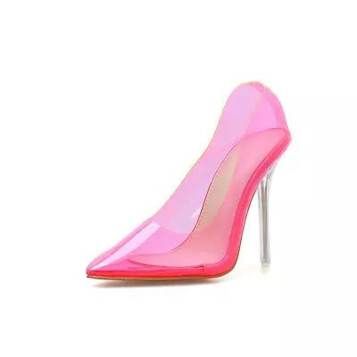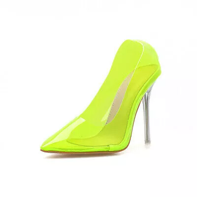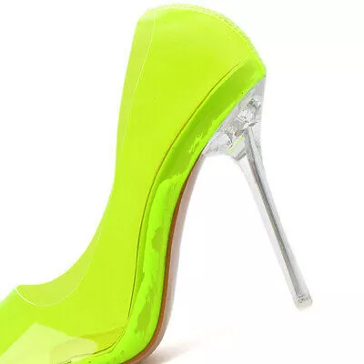 Scarpe donna decolte eleganti stiletto 10 cm verde trasparente sintetica 40