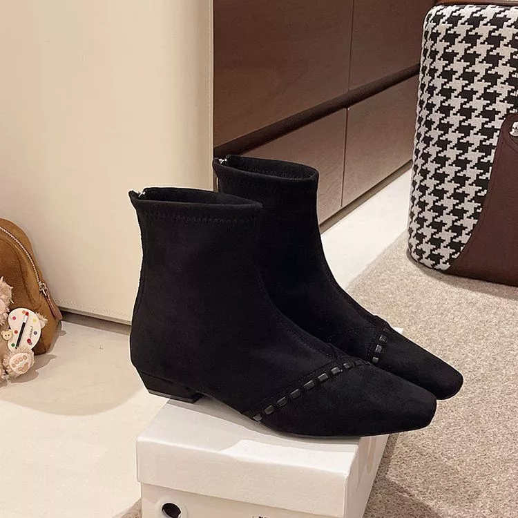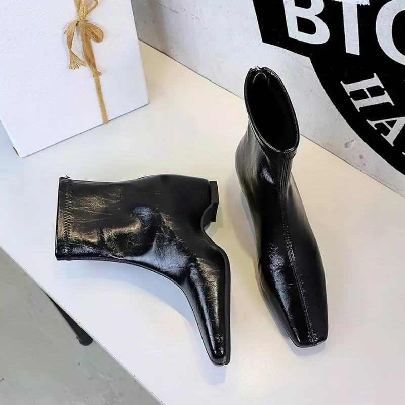 Stivaletti Corti Donna Stile Britannico Con Tacco 5 cm Eleganti Neri CF65407