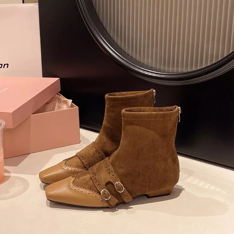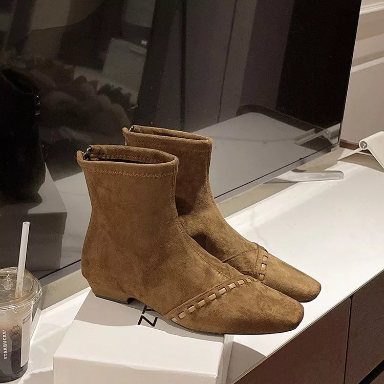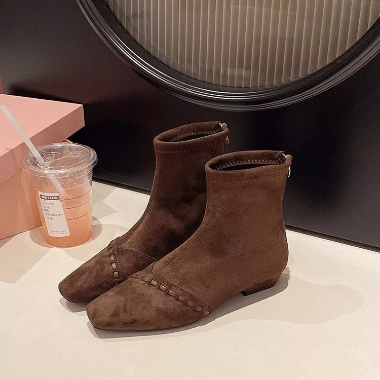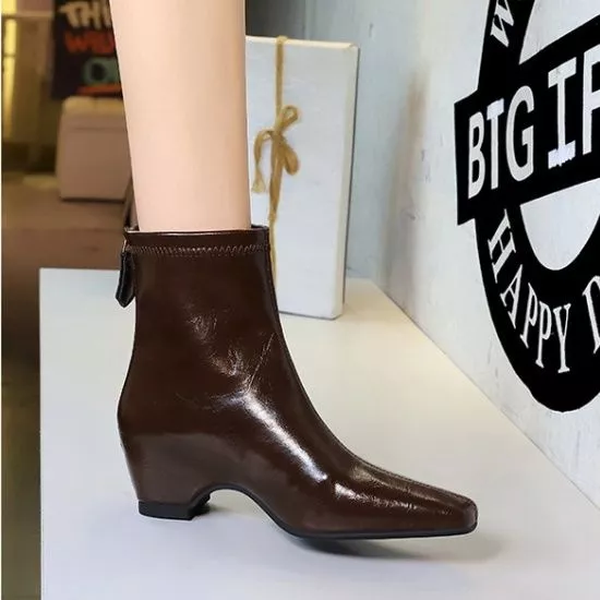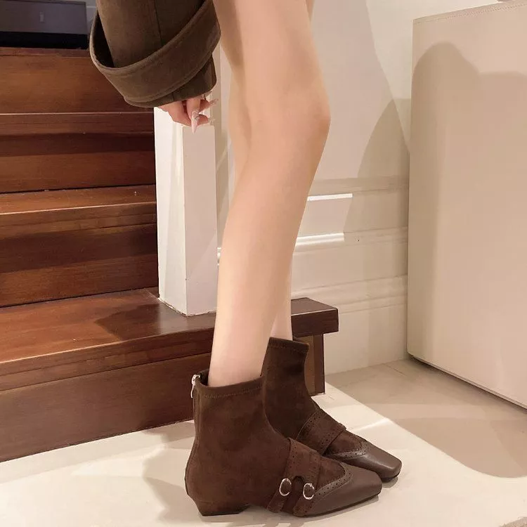 Stivaletti Eleganti Con Tacco Basso 2,5 cm Stile Francese Marrone Scuro CF65393