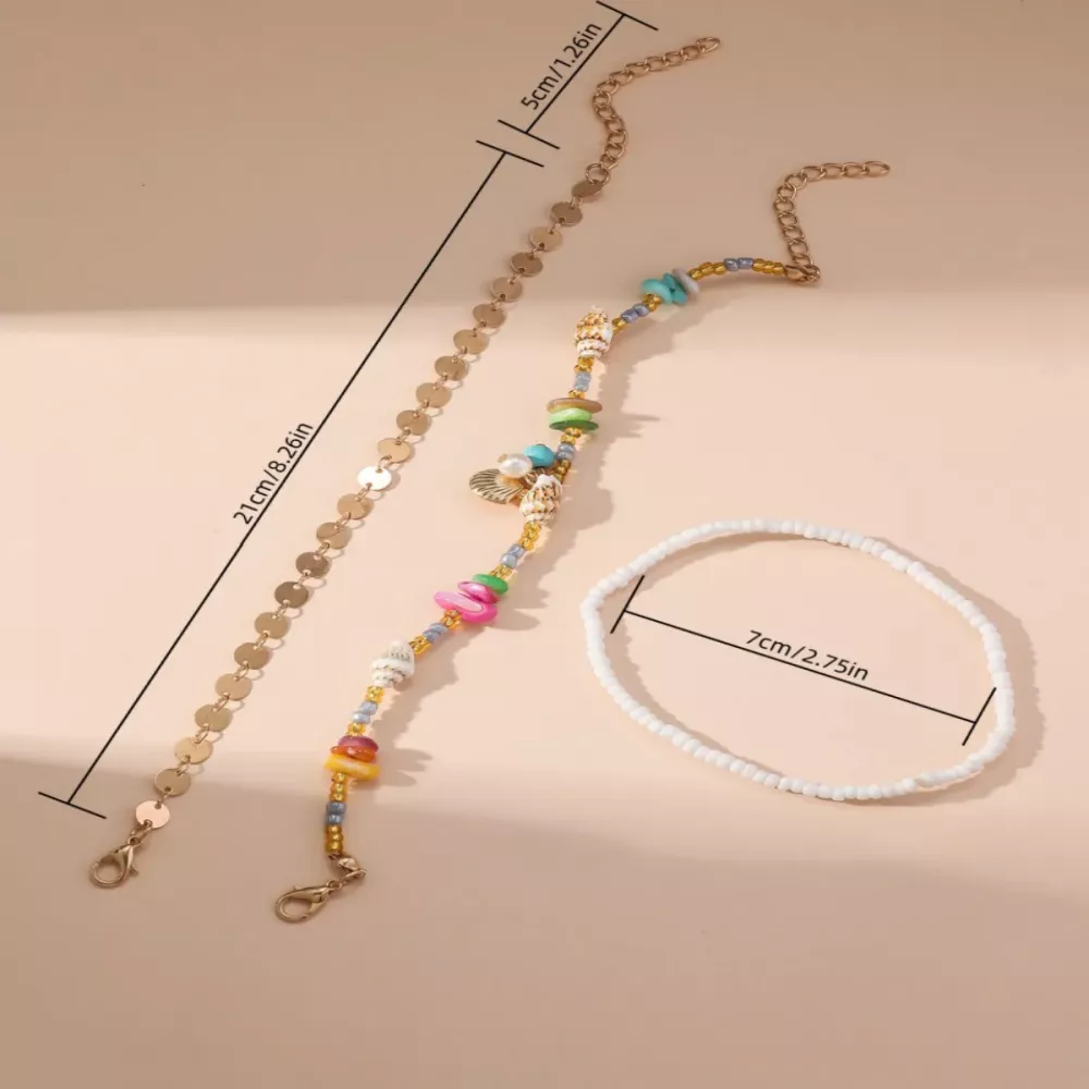 Set 3 Cavigliere Colorate Donna – Accessorio Moda Boho Estate