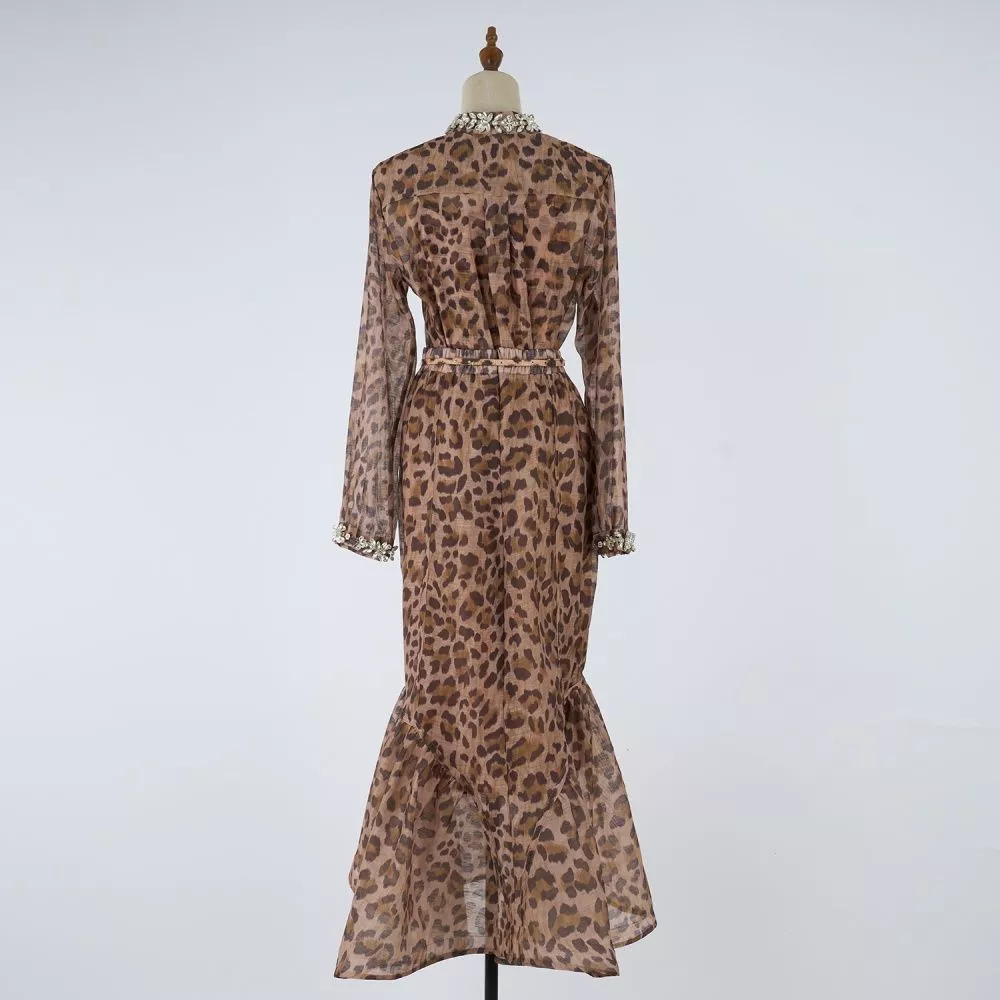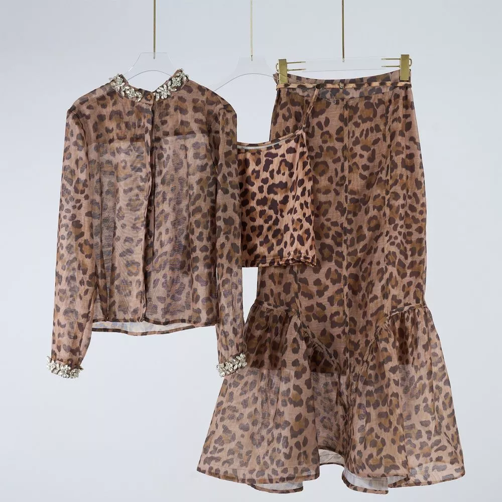Set femminile elegante composto da camicia semitrasparente con colletto gioiello e polsini decorati, abbinata a una gonna longuette mermaid con balza finale che slancia la figura. Il top interno leggero completa il look e garantisce una vestibilità confortevole. Il design raffinato e i dettagli luminosi rendono questo outfit perfetto per cene, eventi e serate speciali. Un set versatile, moderno e di grande impatto visivo.