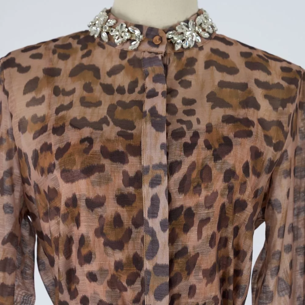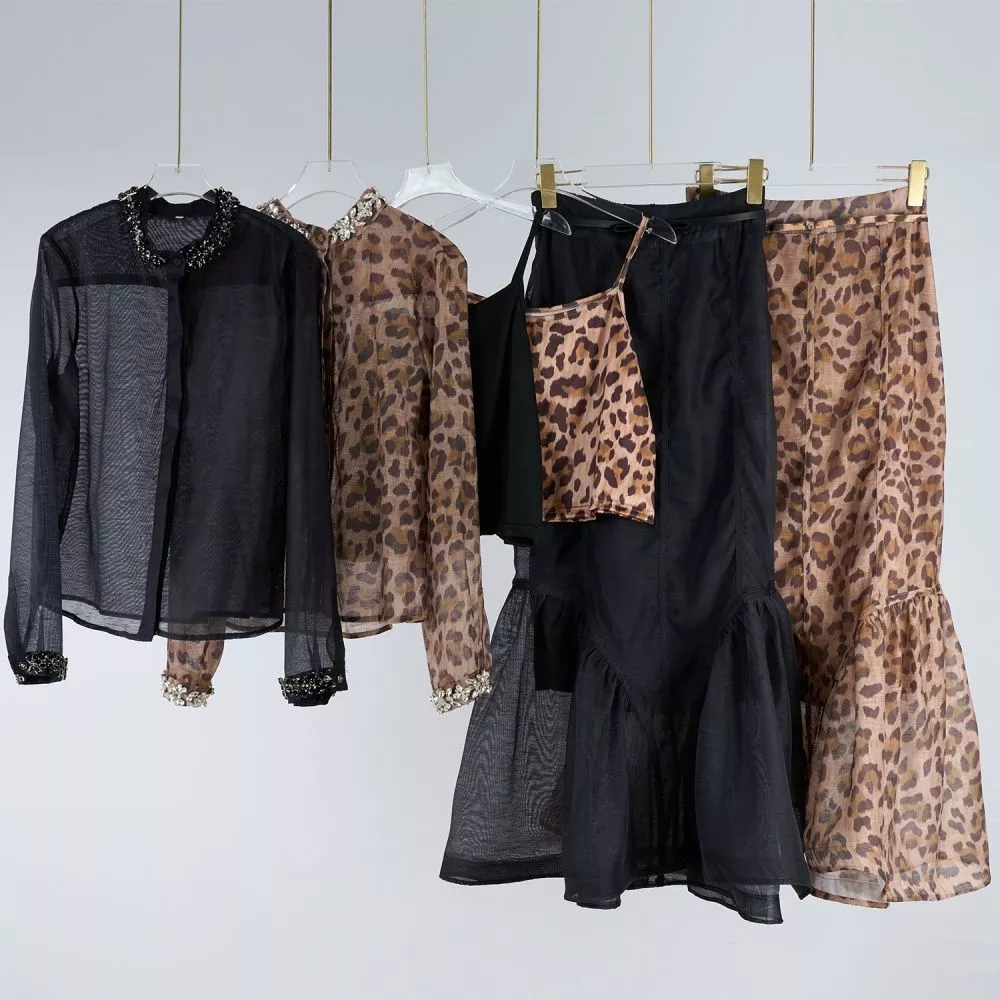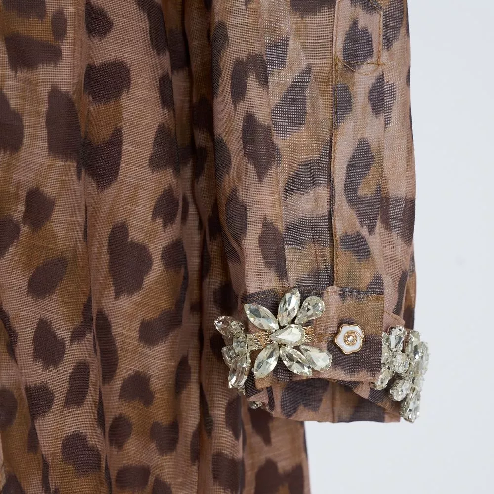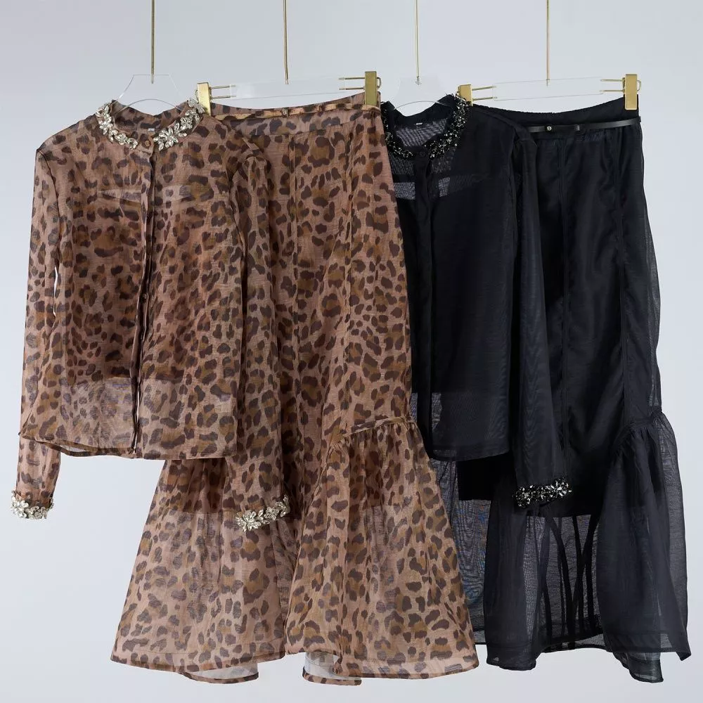 Set Donna Camicia Gioiello Gonna Longuette Leopardata Look Fashion Chic CF58715