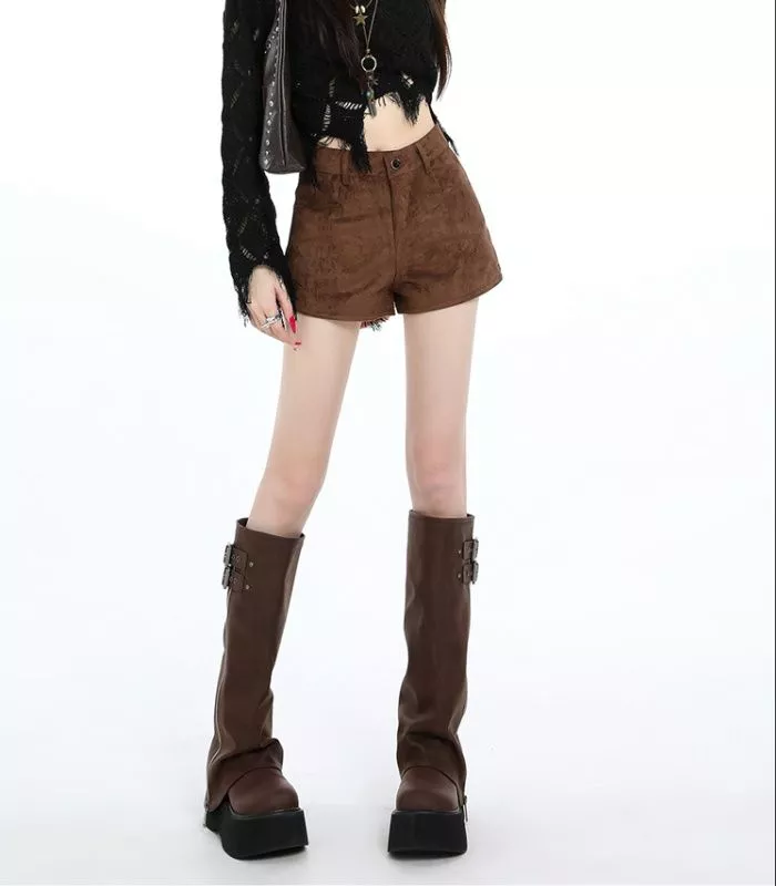 Shorts Marroni Effetto Pelle Con Interno Morbido E Vita Alta Eleganti CF55039
