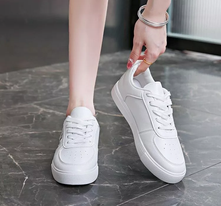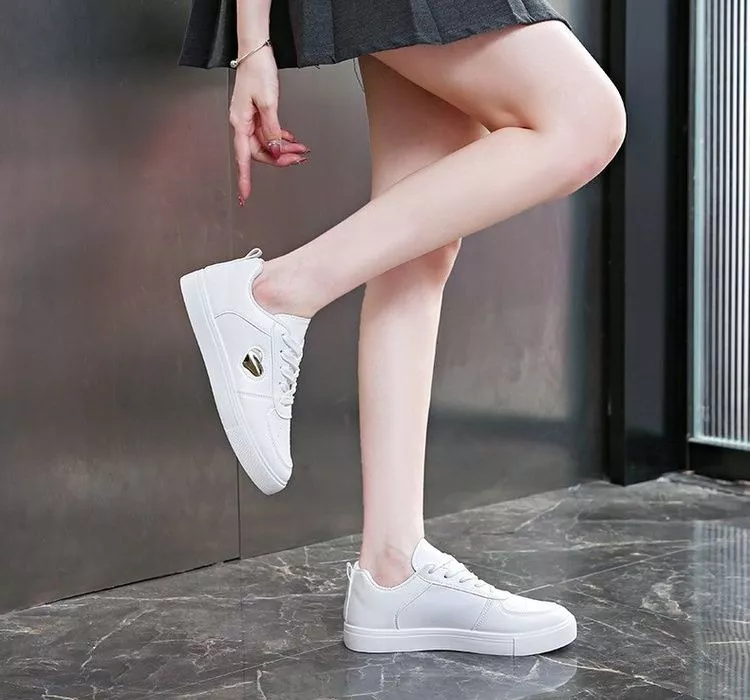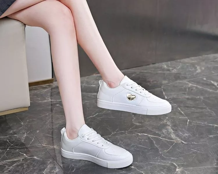 Sneakers Bianche Con Cuore Dorato In Pelle Sintetica Casual Romantiche CF55156