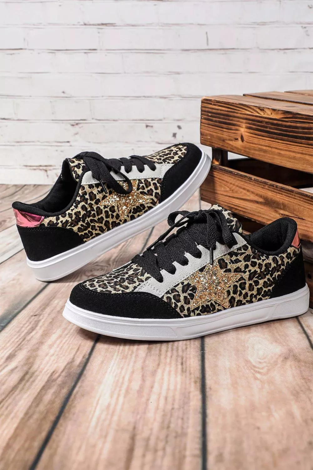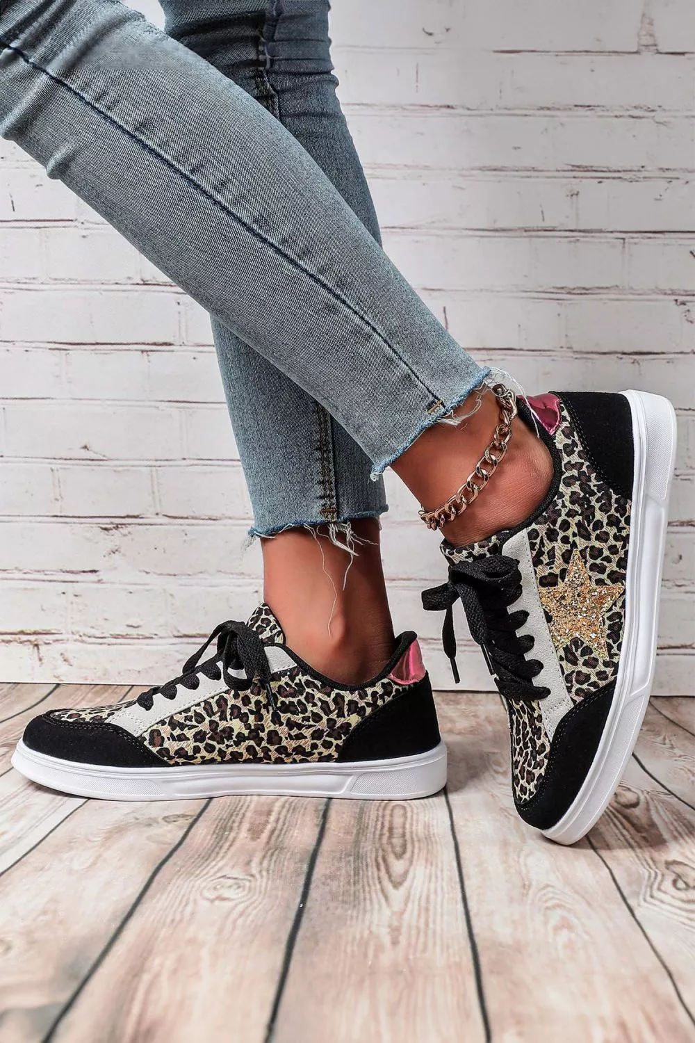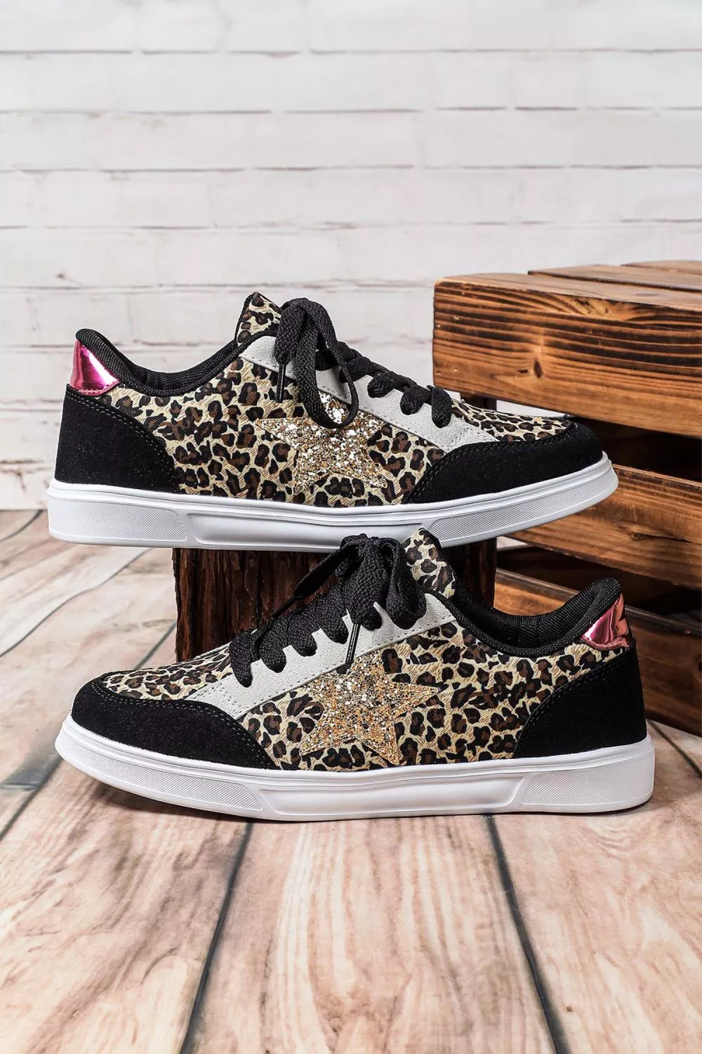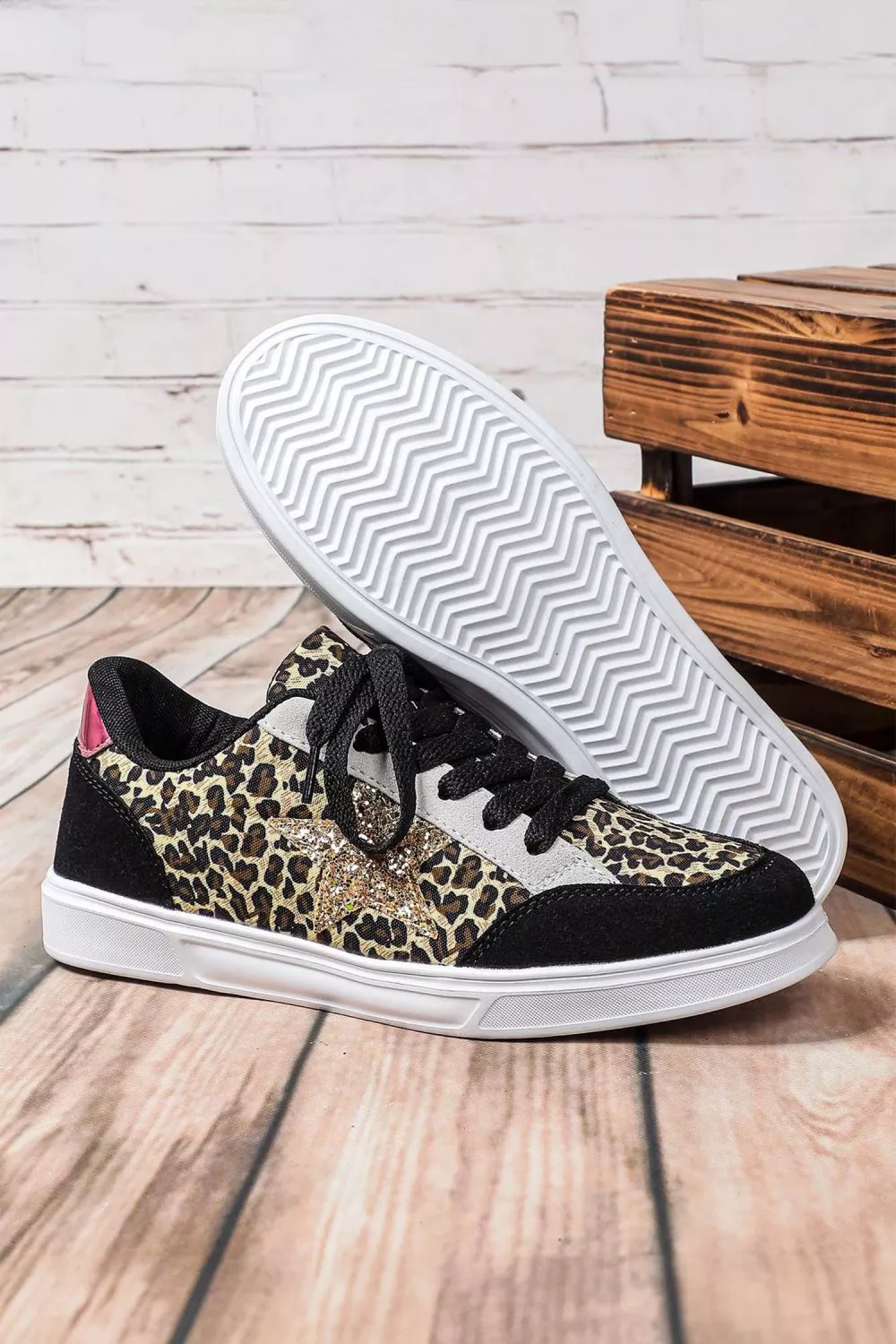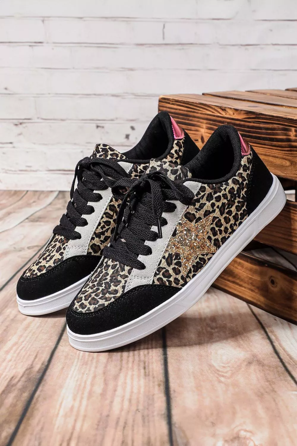 Sneakers Donna Nere Animalier Glitter Stella Stringate Casual Moda Trend CF24138