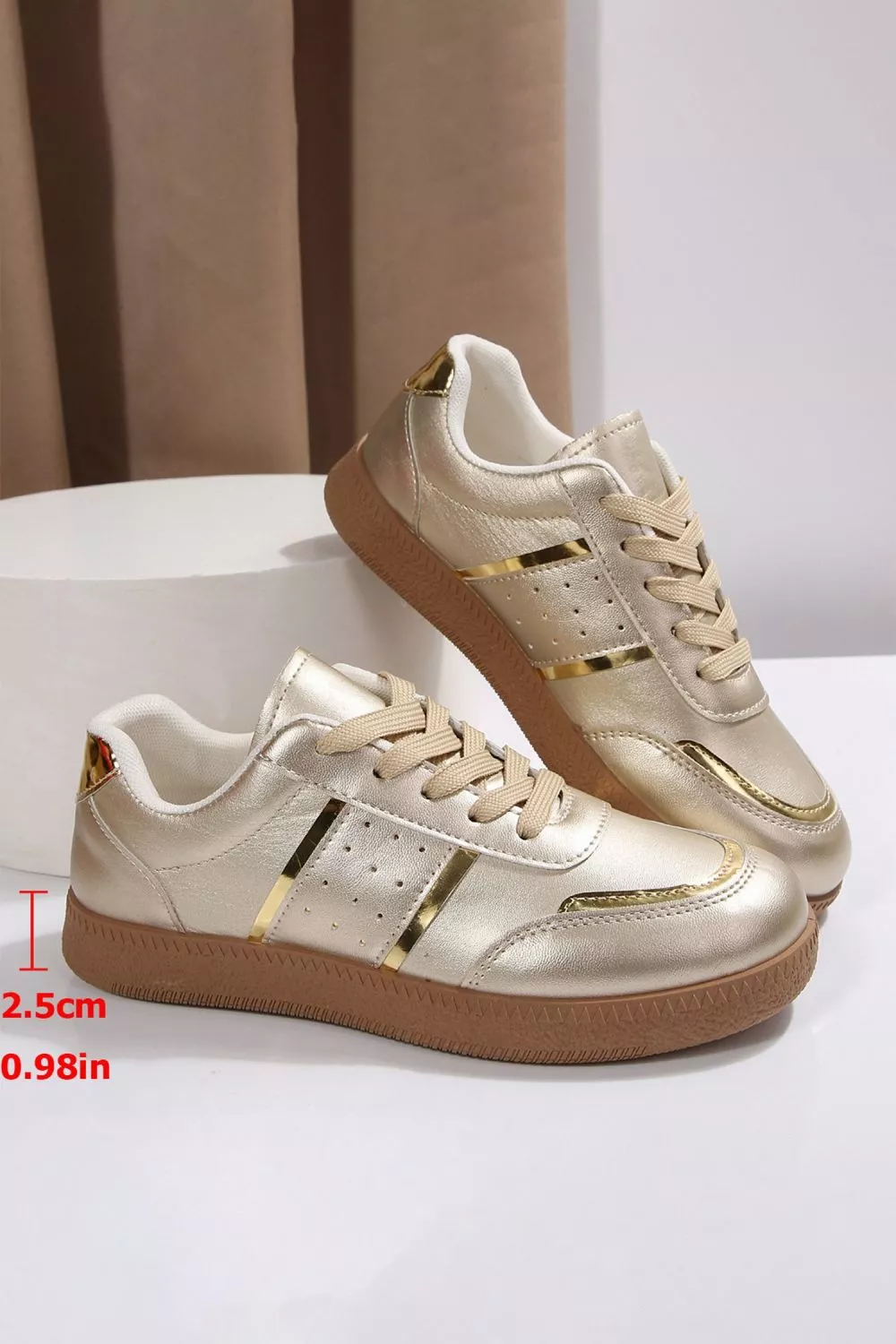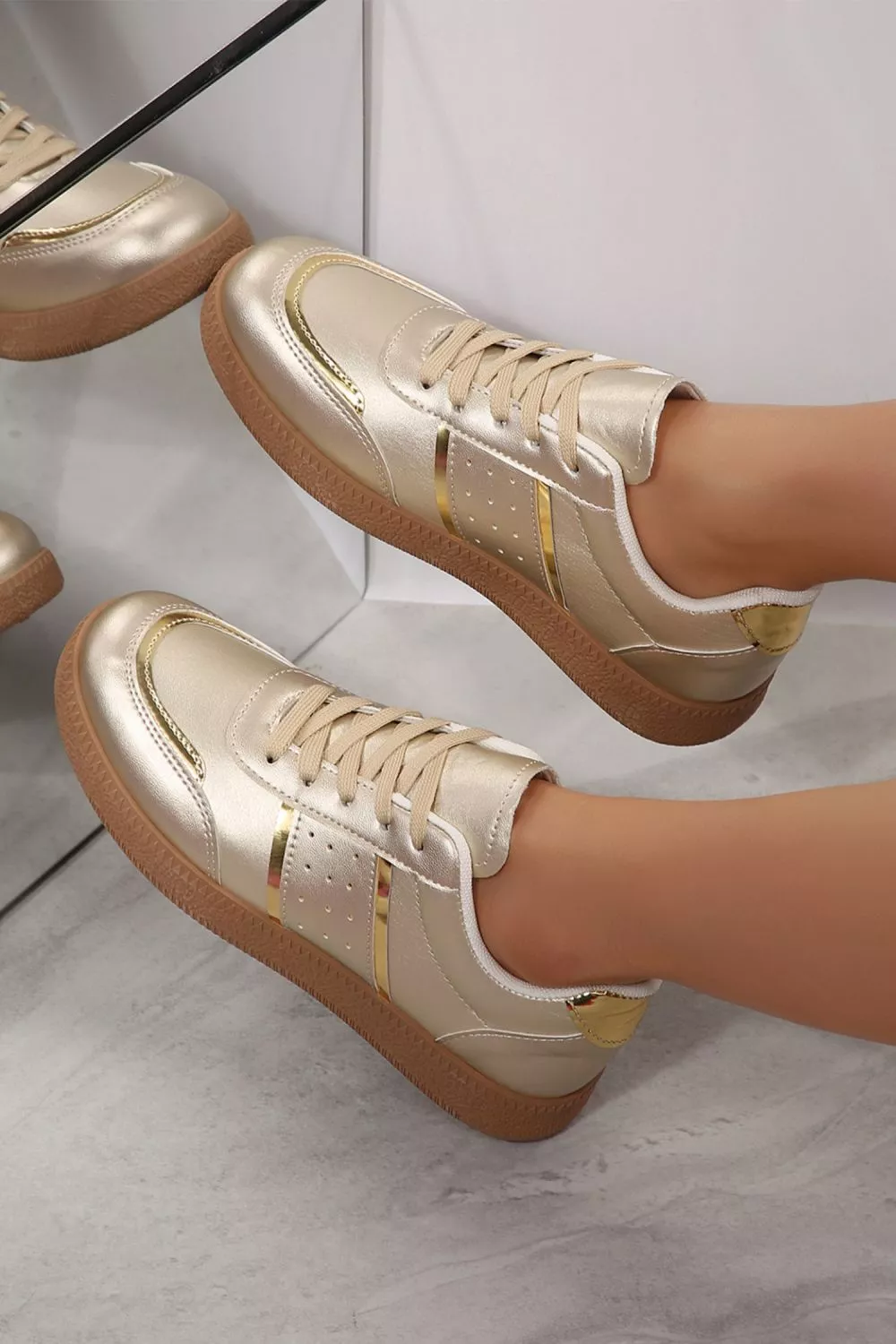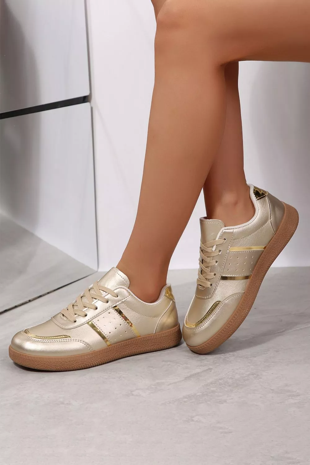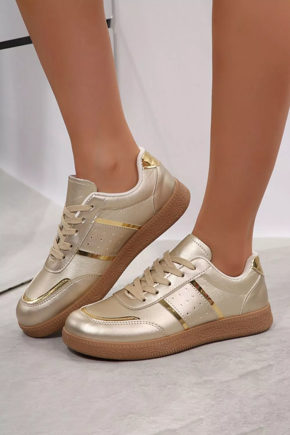 Sneakers Donna Oro Metallizzato Eleganti Stringate Casual Chic Moda CF22466