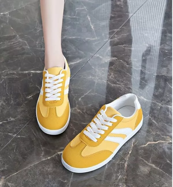 Sneakers Gialle Con Strisce Bianche In Tessuto Sintetico Casual Leggere CF55149
