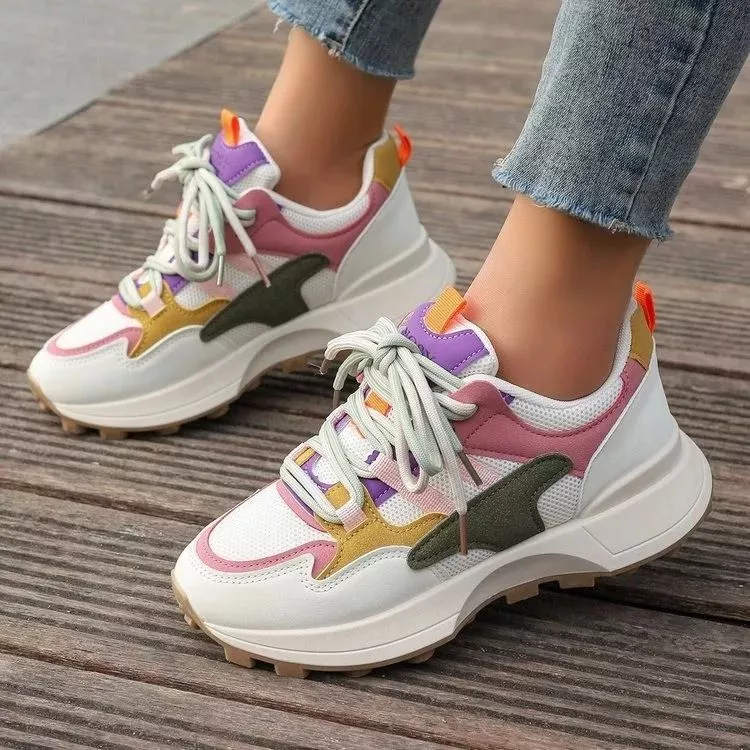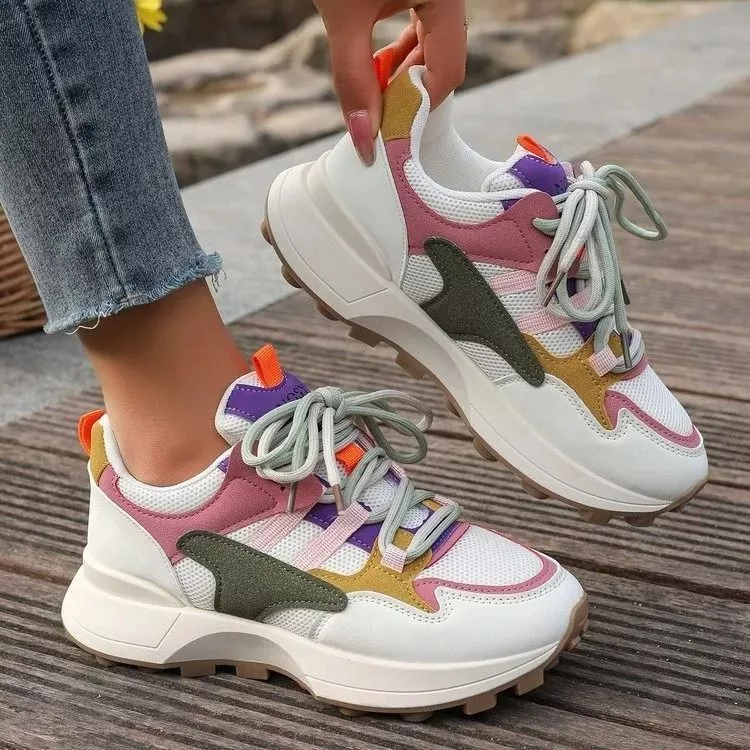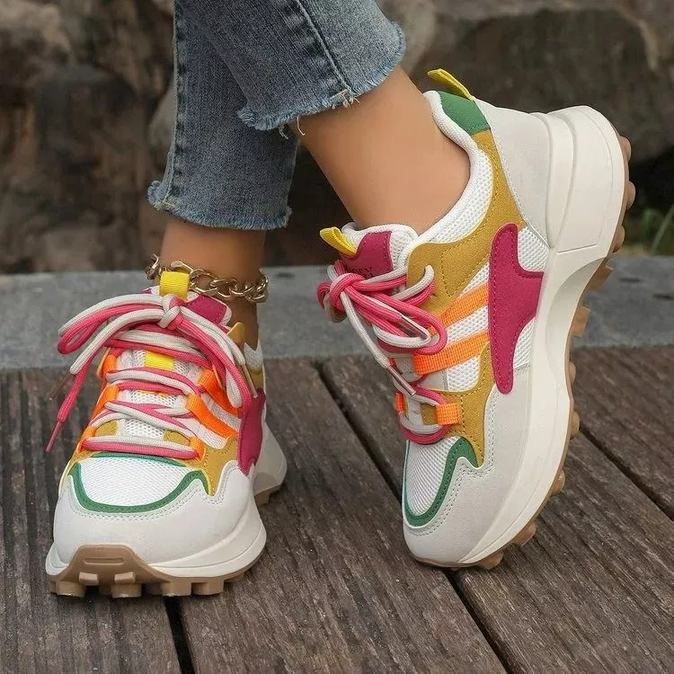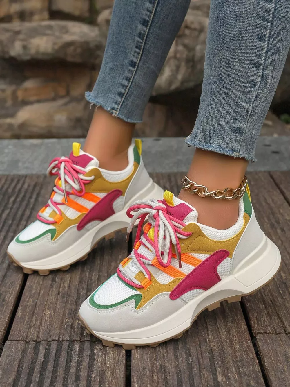 Sneakers Multicolor Con Suola Chunky E Dettagli Arancio Fucsia Verde – 75546