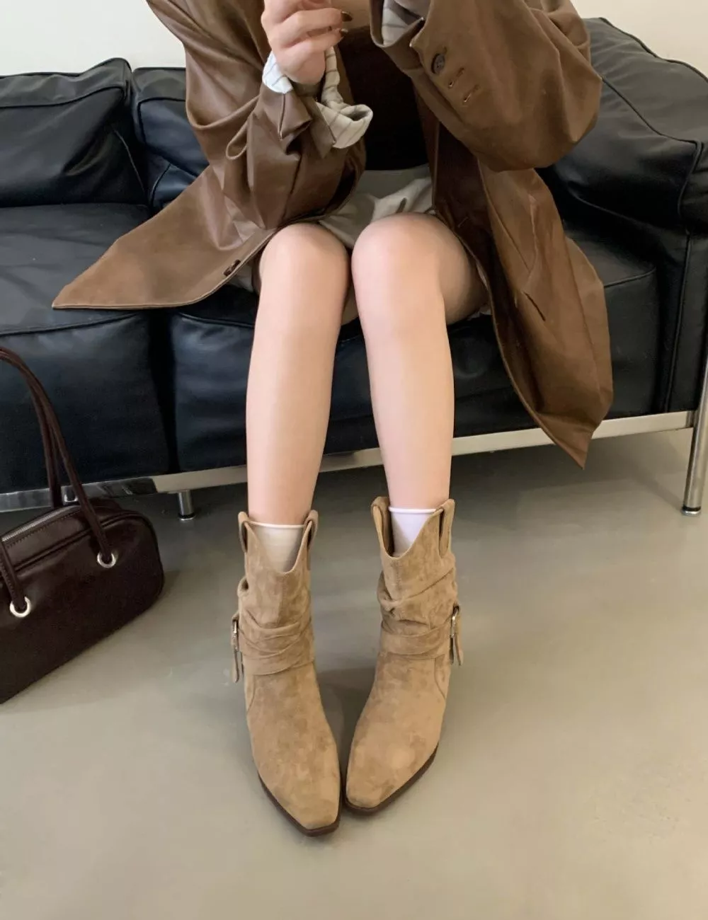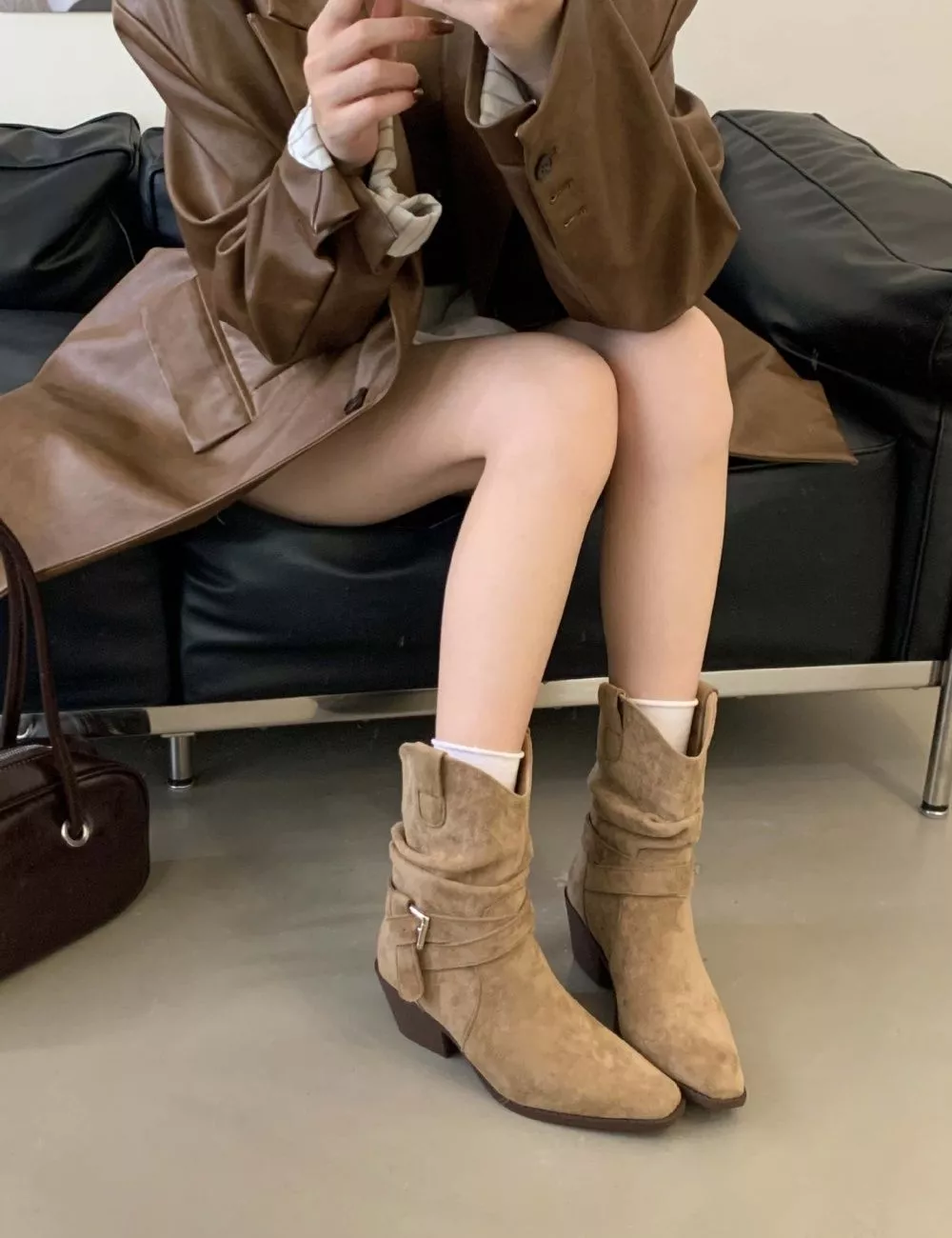 Stivaletti Cammello A Punta Con Fibbia In Pelle Sintetica Scamosciato CF54979