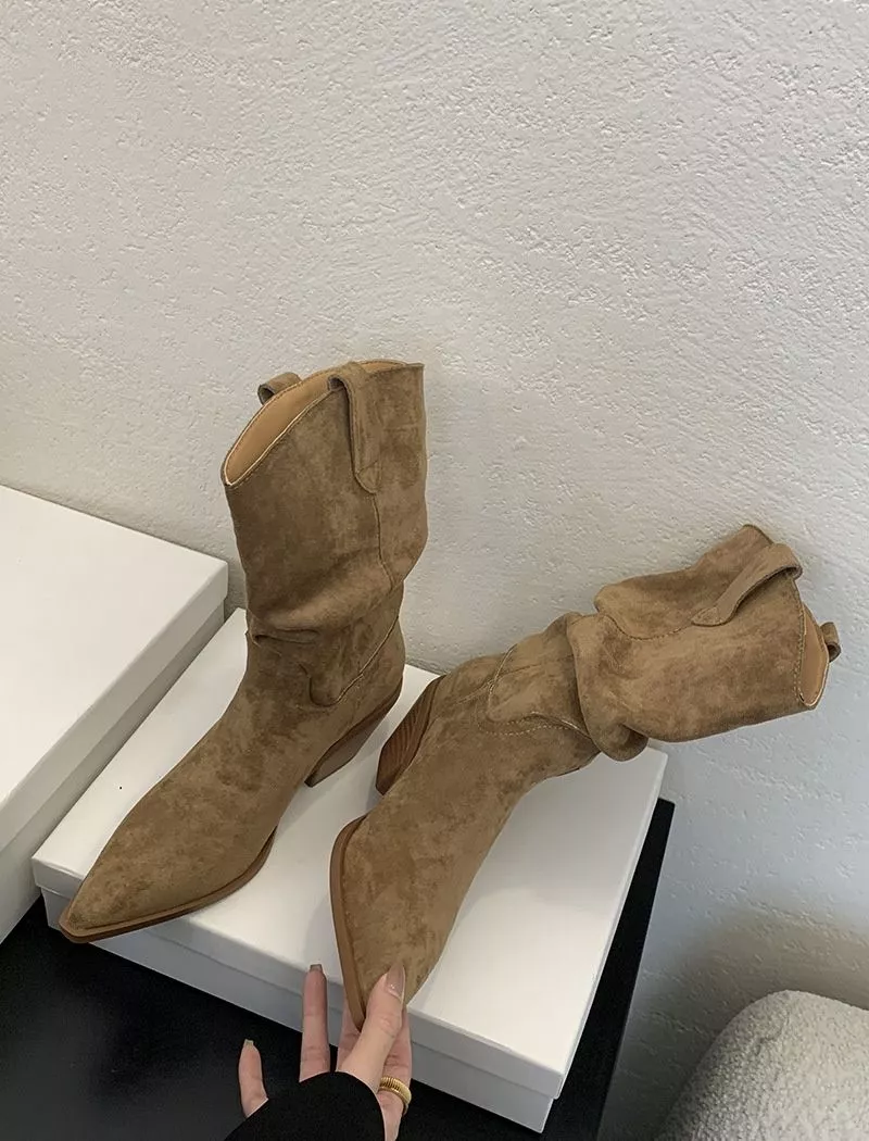 Stivaletti Cammello A Punta In Pelle Sintetica Scamosciato Tacco 6 Cm CF54978