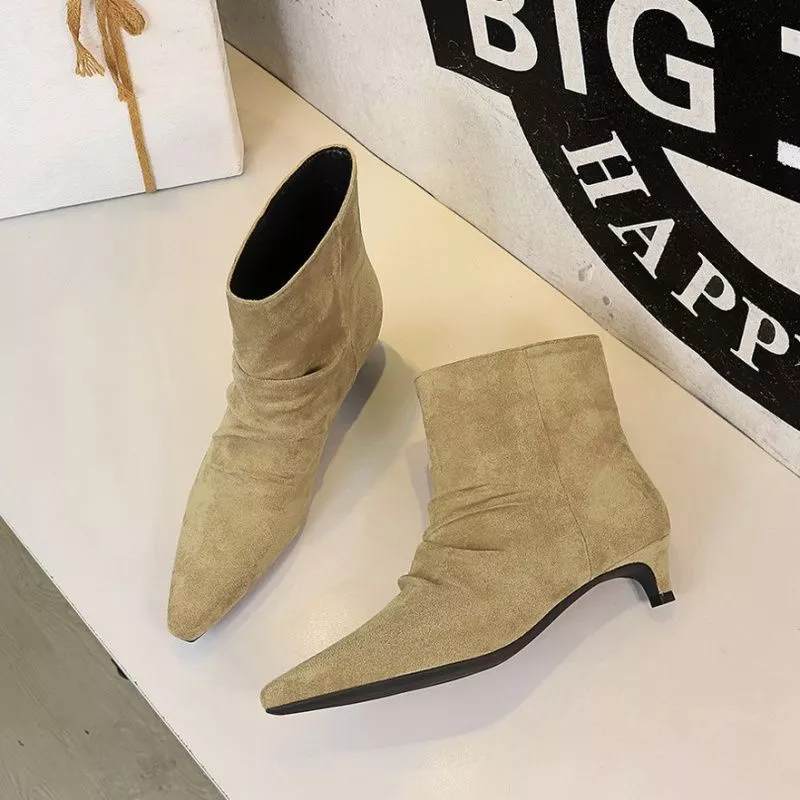 Stivaletti donna alla caviglia dal design essenziale e raffinato, ideali per completare outfit eleganti e look quotidiani curati. La punta affusolata slancia la figura, mentre il tacco basso da 3 cm garantisce comfort e stabilità per l'uso prolungato. Il gambale corto con leggera arricciatura aggiunge carattere senza appesantire la linea, rendendo il modello versatile per ufficio, tempo libero e occasioni informali.