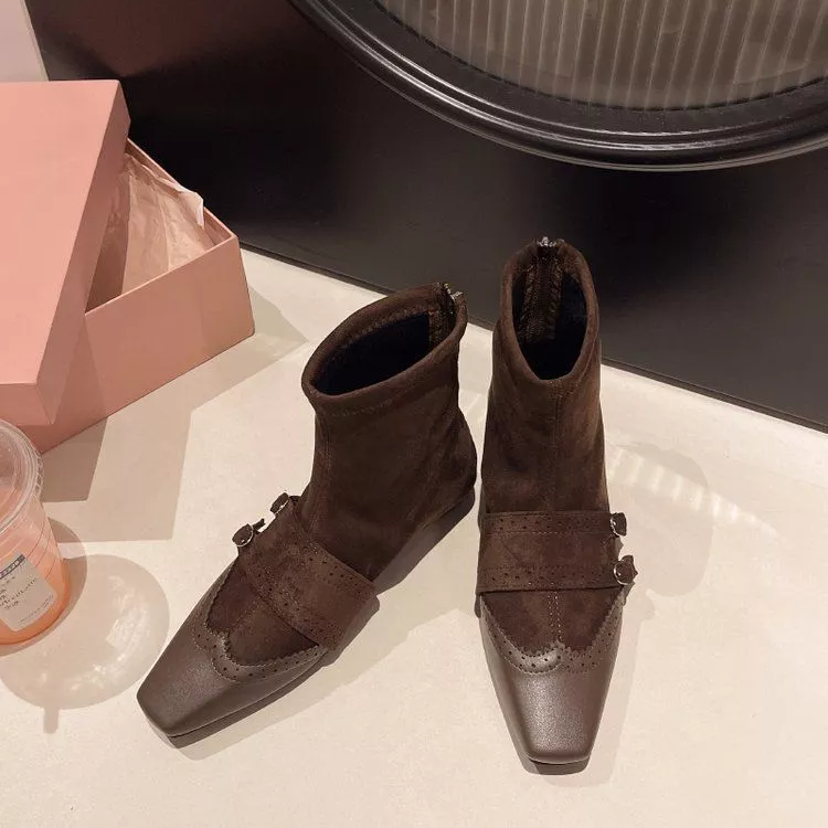 Stivaletti Eleganti Con Tacco Basso 2,5 cm Stile Francese Marrone Scuro CF65393
