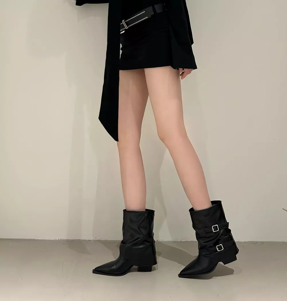 Stivaletti eleganti e versatili con doppia fibbia laterale, ideali per look moderni e decisi.