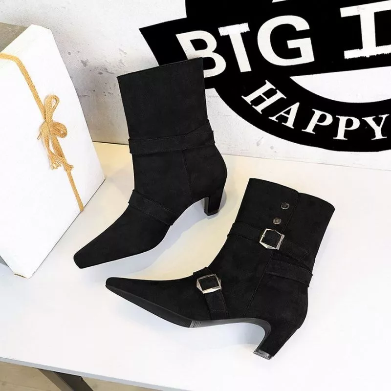 Stivaletti Neri Con Tacco 5 Cm Punta Affusolata Cinturini Eleganti Donna CF60314