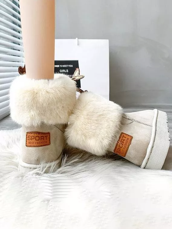 Stivaletti stivali scarpe donna beige neve pelliccia pelle sintetica CZ336