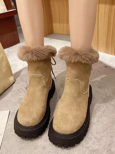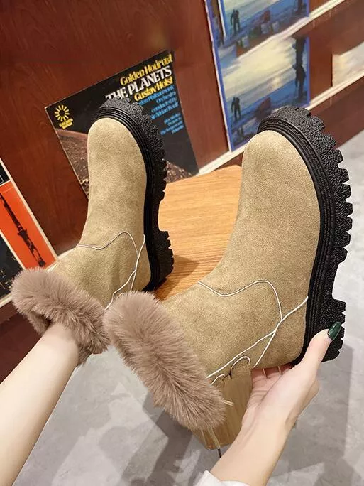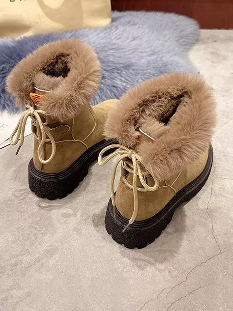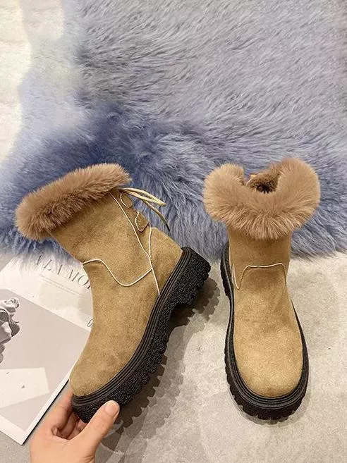 Stivaletti stivali scarpe donna beige neve pelliccia pelle sintetica CZ337