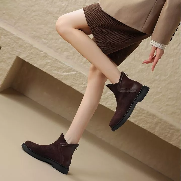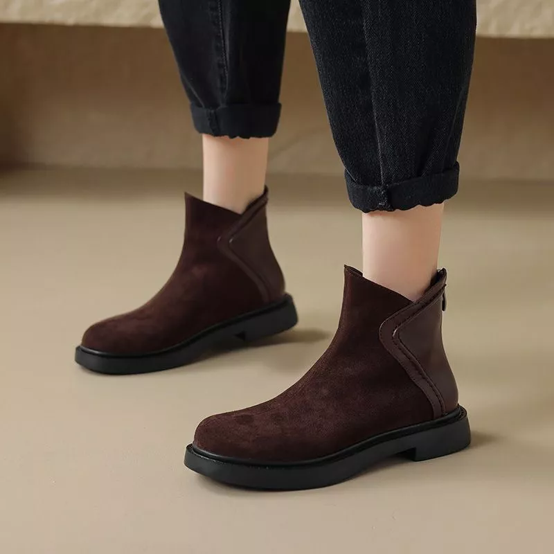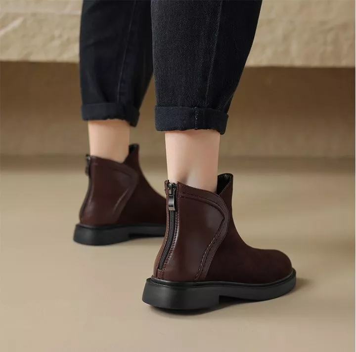 Stivaletti Stivali Tacco Basso Eleganti Marrone Comodi Pelle Sintetica 79805