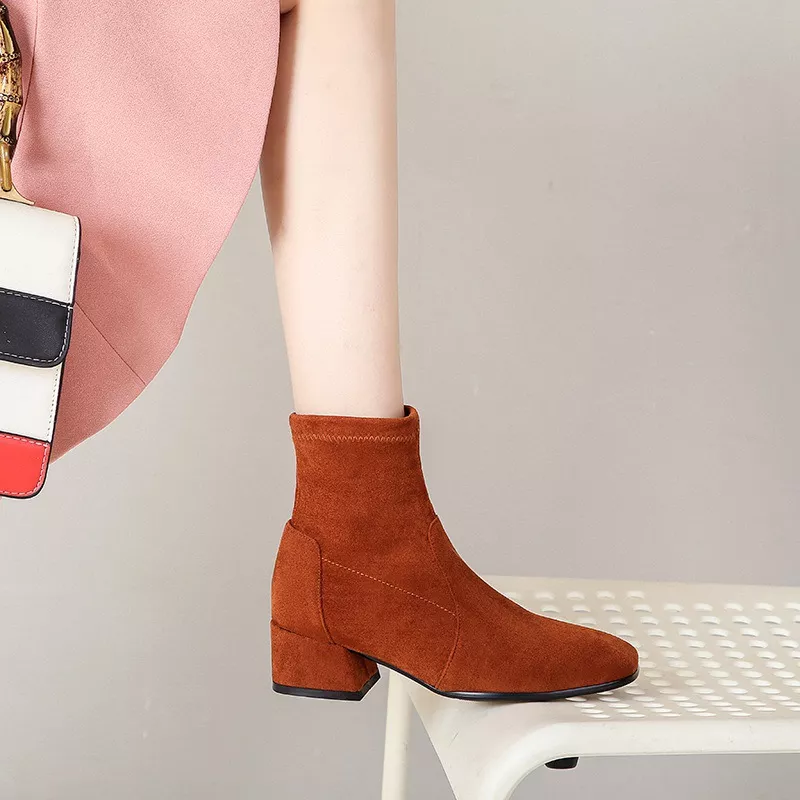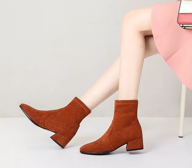 Stivaletti Stivali Tacco Basso Morbido Eleganti Marrone Pelle Sintetica 72888