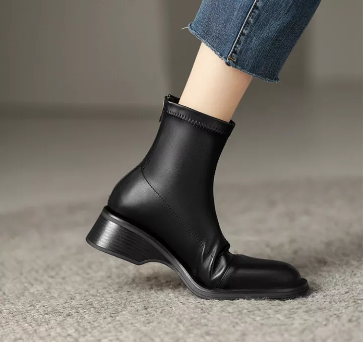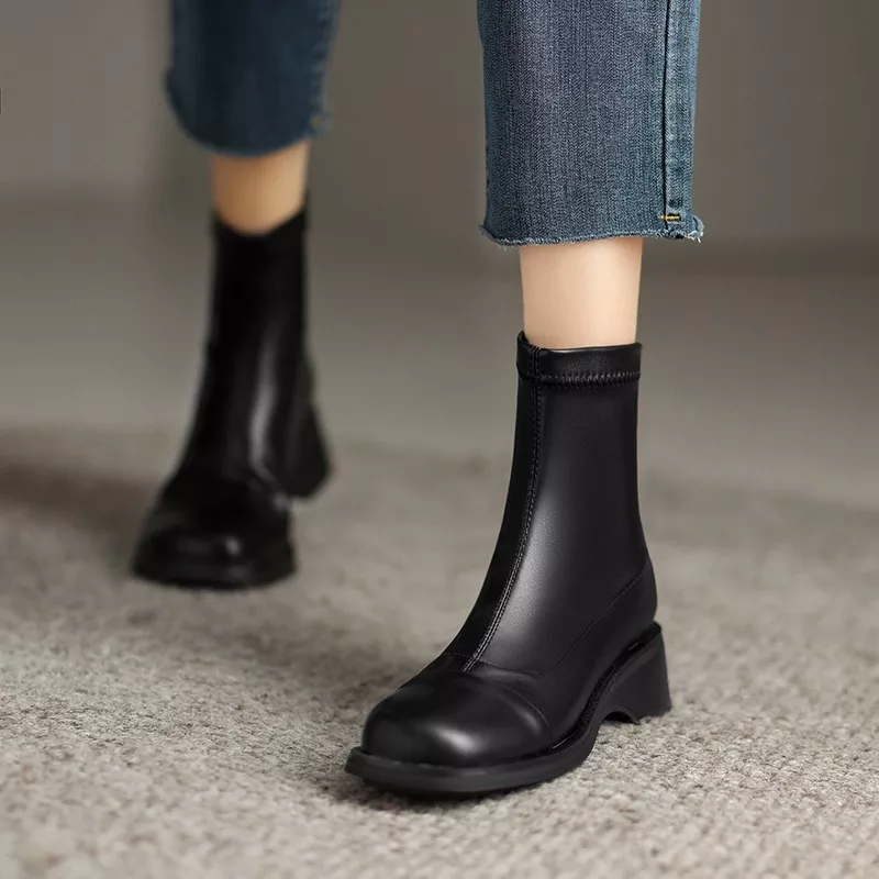 Stivaletti Stivali Tacco Basso Tronchetto Comodi Nero Pelle Sintetica 39796