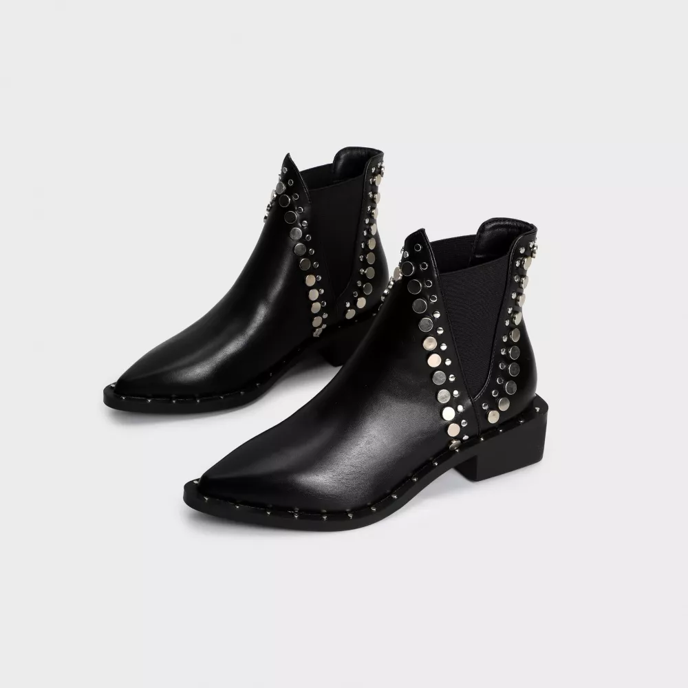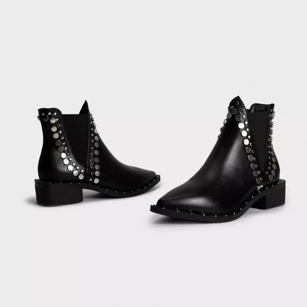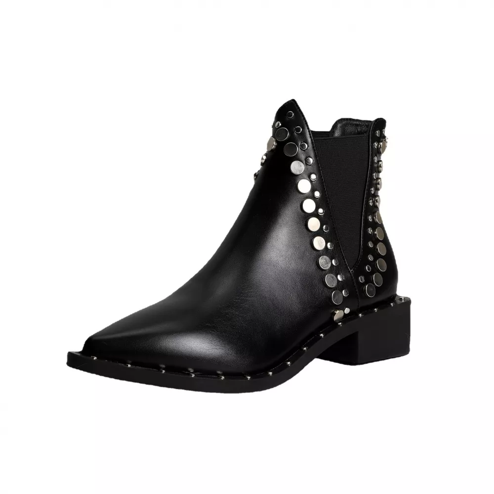 Stivaletti Stivali Tacco Basso Tronchetto Comodi Nero Pelle Sintetica 40612