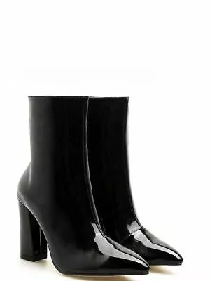 Stivaletti stivali tacco quadrato nero lucido 9 cm pelle sintetica 1366