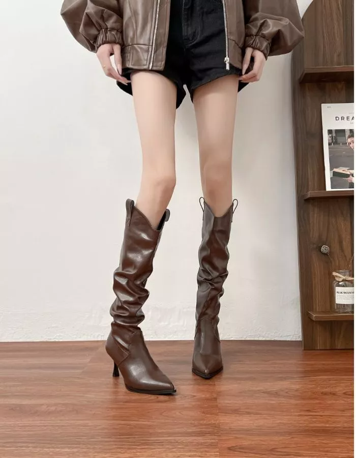 Stivali alti dallo stile elegante con gambale morbido effetto arricciato, ideali per creare look femminili e valorizzare la gamba grazie al tacco sottile di 7 cm, che slancia senza rinunciare alla stabilità. La punta dalla linea pulita dona un aspetto sofisticato, mentre la pelle sintetica assicura una calzata confortevole e facile da mantenere. Perfetti per outfit autunnali e serali, si abbinano a gonne, abiti e pantaloni aderenti per un risultato moderno e ricercato.