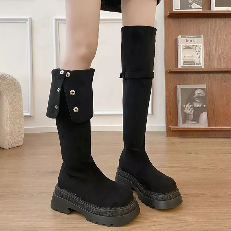 Stivali Alti Platform Suola Spessa Anfibi Moda Invernale Colore Nero CF61267