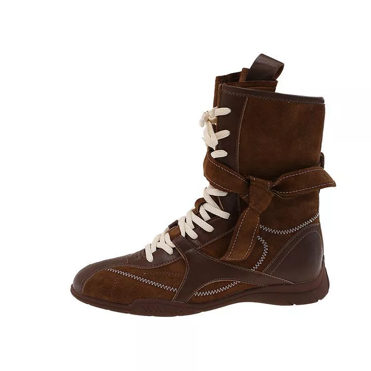 Stivali Alti Urban Fashion Suola Leggera Cuciture Decorative Marrone CF61270