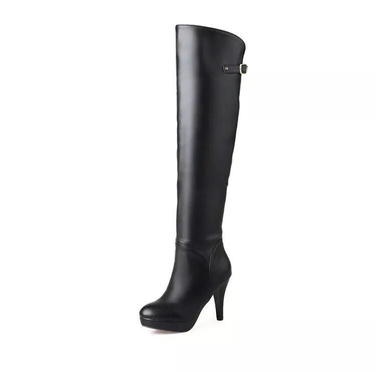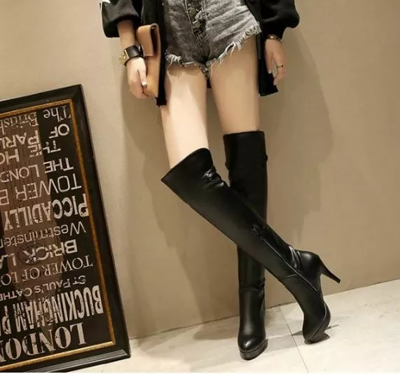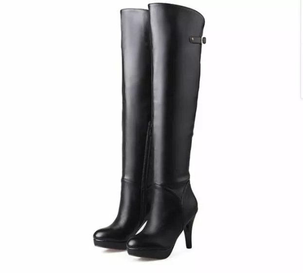 stivali coscia donna tacco alto 10 cm nero comodi caldi pelle sintetica 38