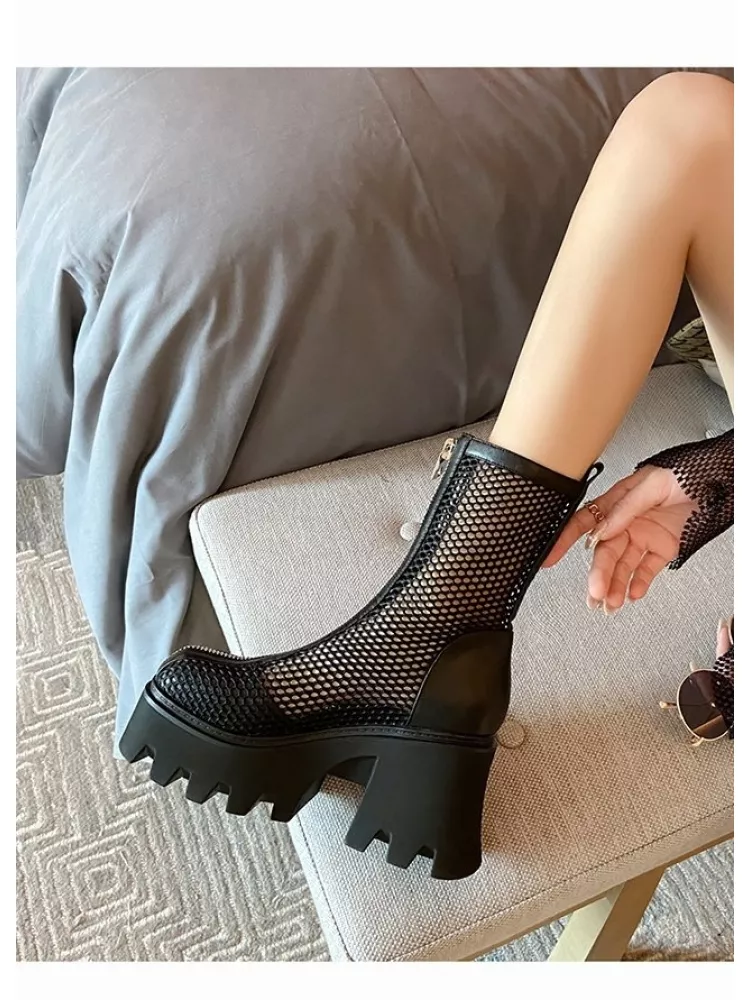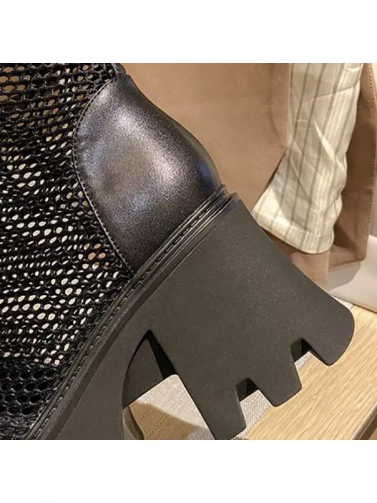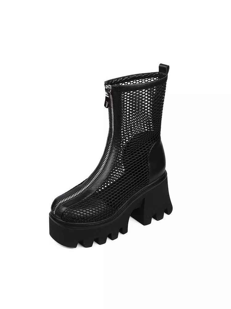 stivali estivi platform donna 7 cm perforato nero zeppa pelle sintetica 72014