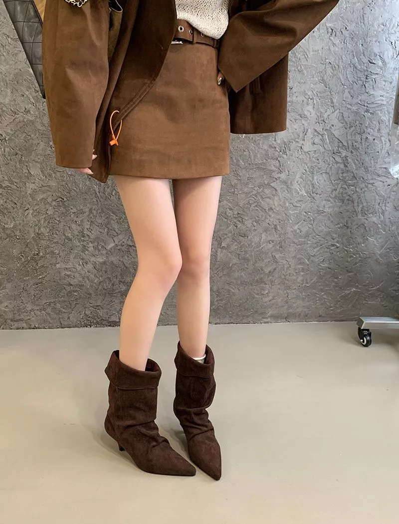 Stivali da donna a punta dal design raffinato, perfetti per la stagione autunnale. Realizzati in morbida pelle sintetica scamosciata, offrono una calzata comoda e uno stile sofisticato.