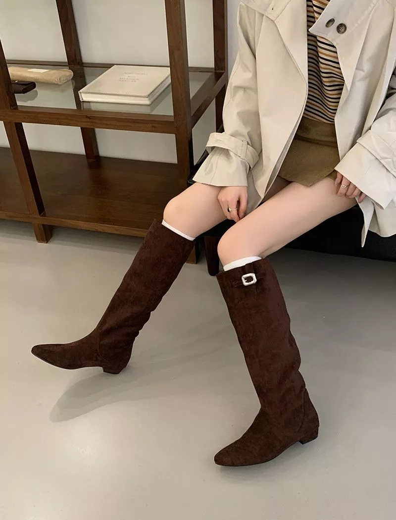 ✨ Dettagli: fibbia laterale in metallo, punta affusolata, taglio sotto il ginocchio